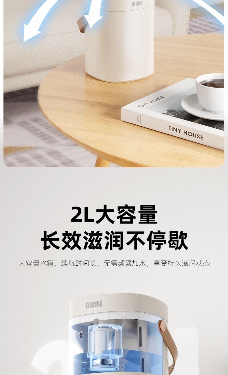 水容量:2L 产品尺寸:138.4x130x175mm净重:274g 喷雾时间:10小时定时关机 喷雾量:数显可调 暖光氛围灯光 输入TYPE-C,5V2A颜色:米色材质:ABS+PP+电子元器件 三喷加湿,精油和水分体设计 暖光灯效,细腻水雾 大雾加湿,轻音运行 2L大容量水箱,灯光和雾量大小可调 TYPE-C接口,贴心手提