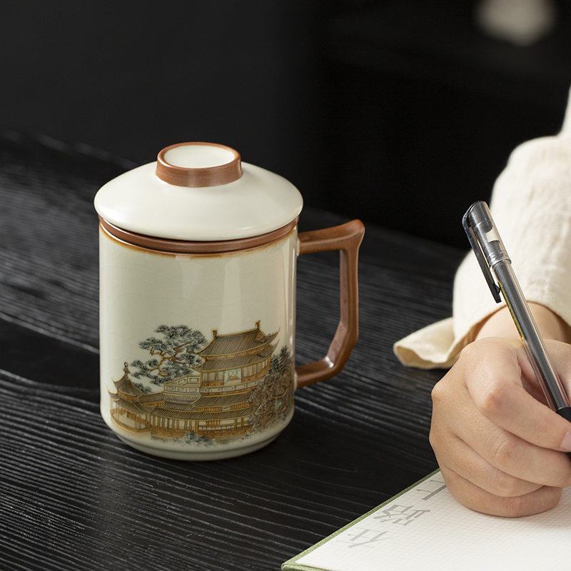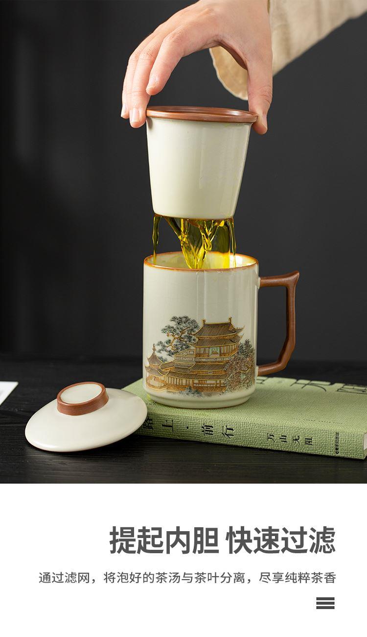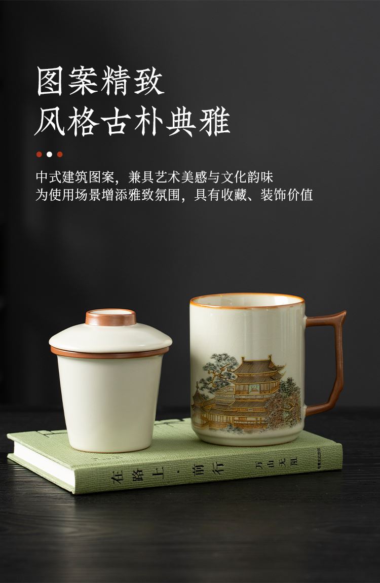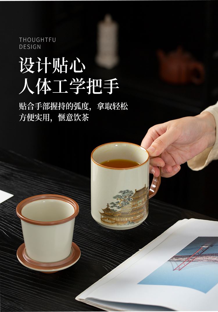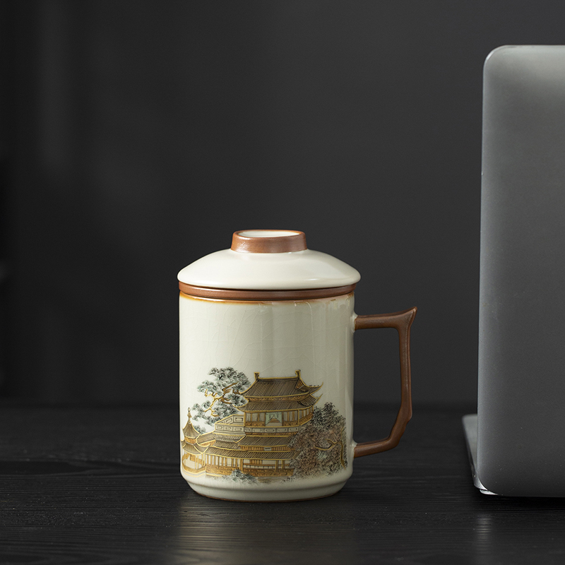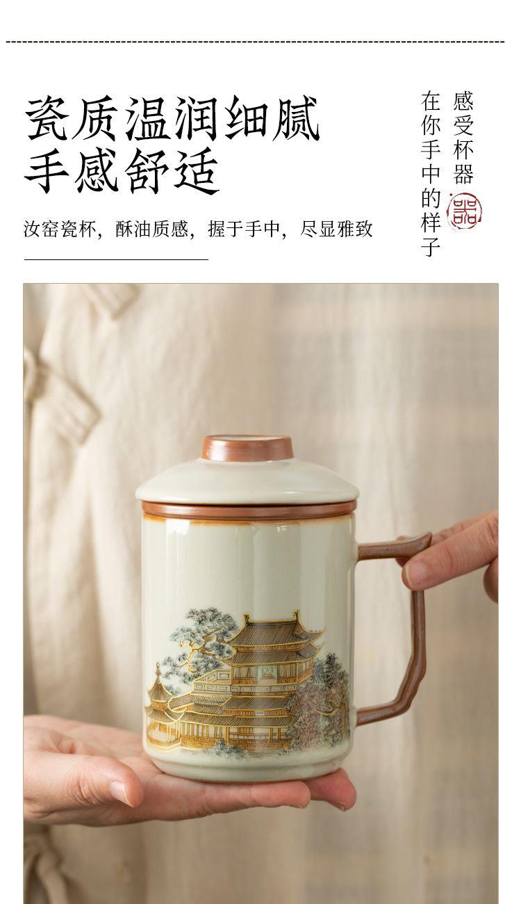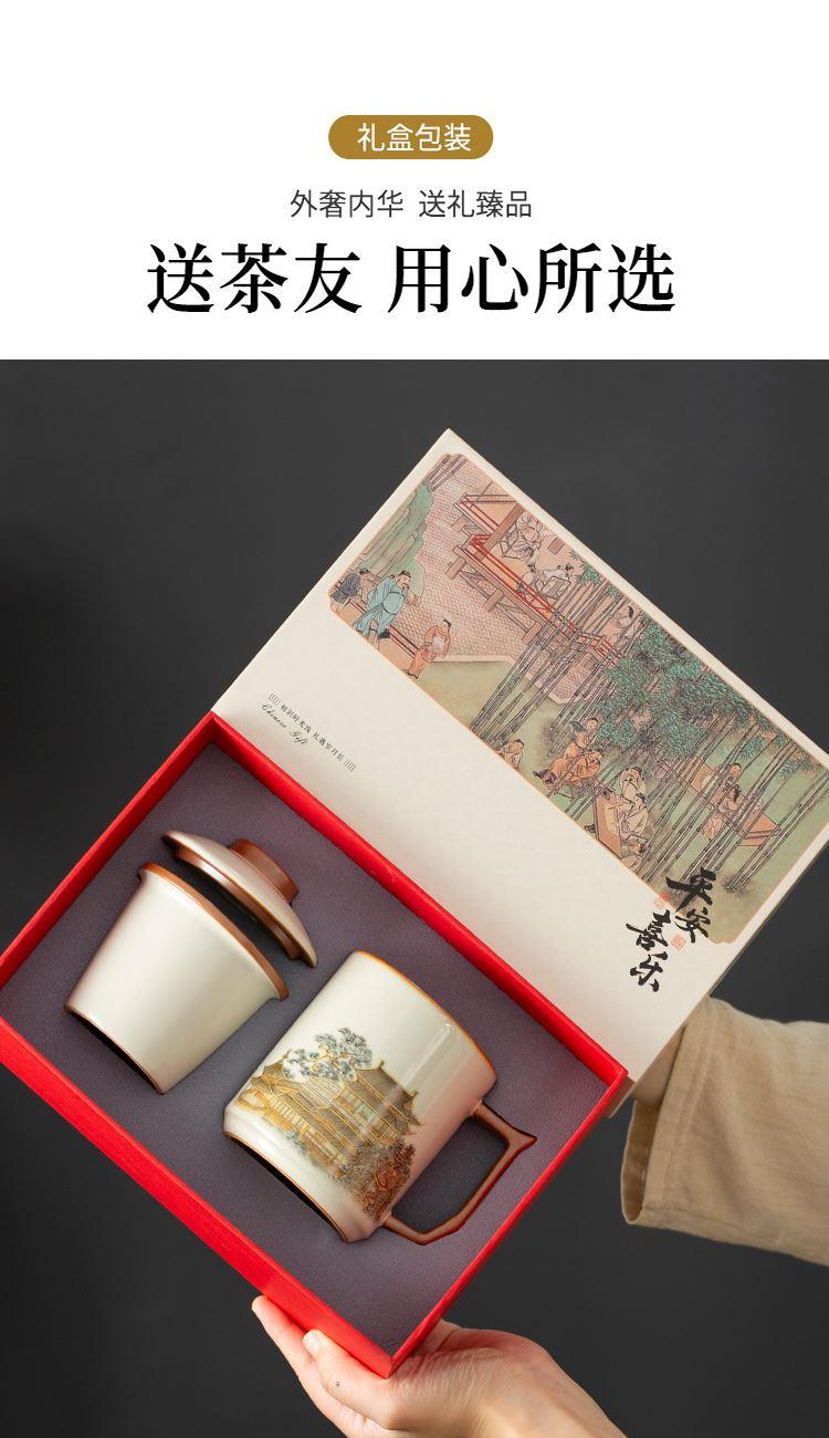 云博陶瓷汝窑黄鹤楼办公杯过滤水杯三件套中国风节日礼品随手礼