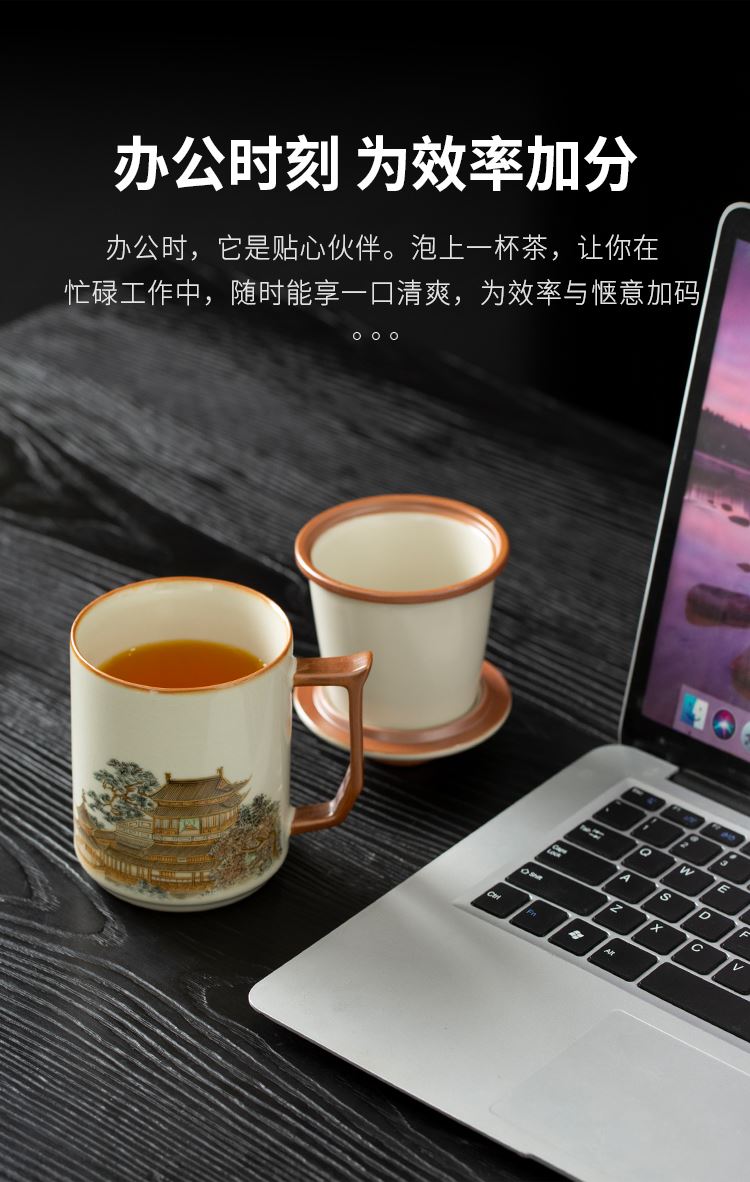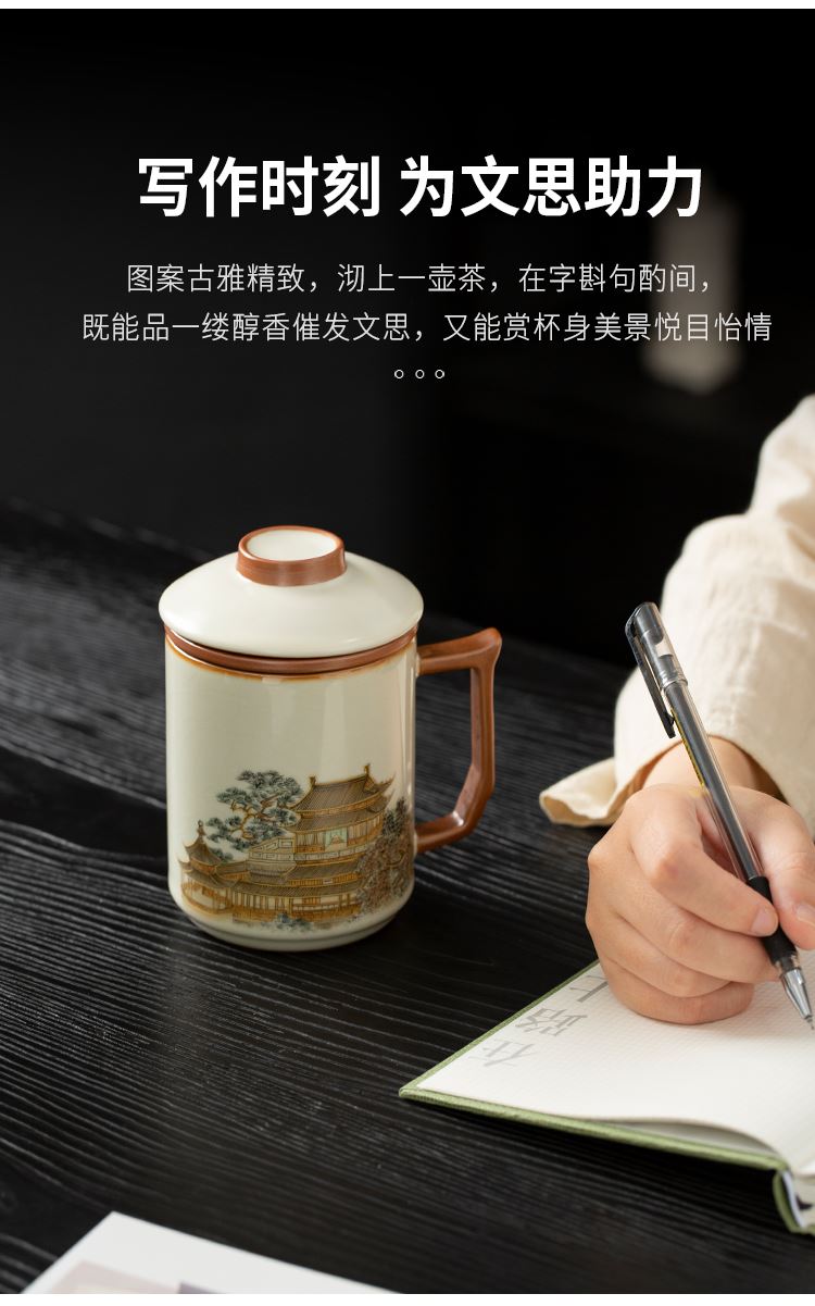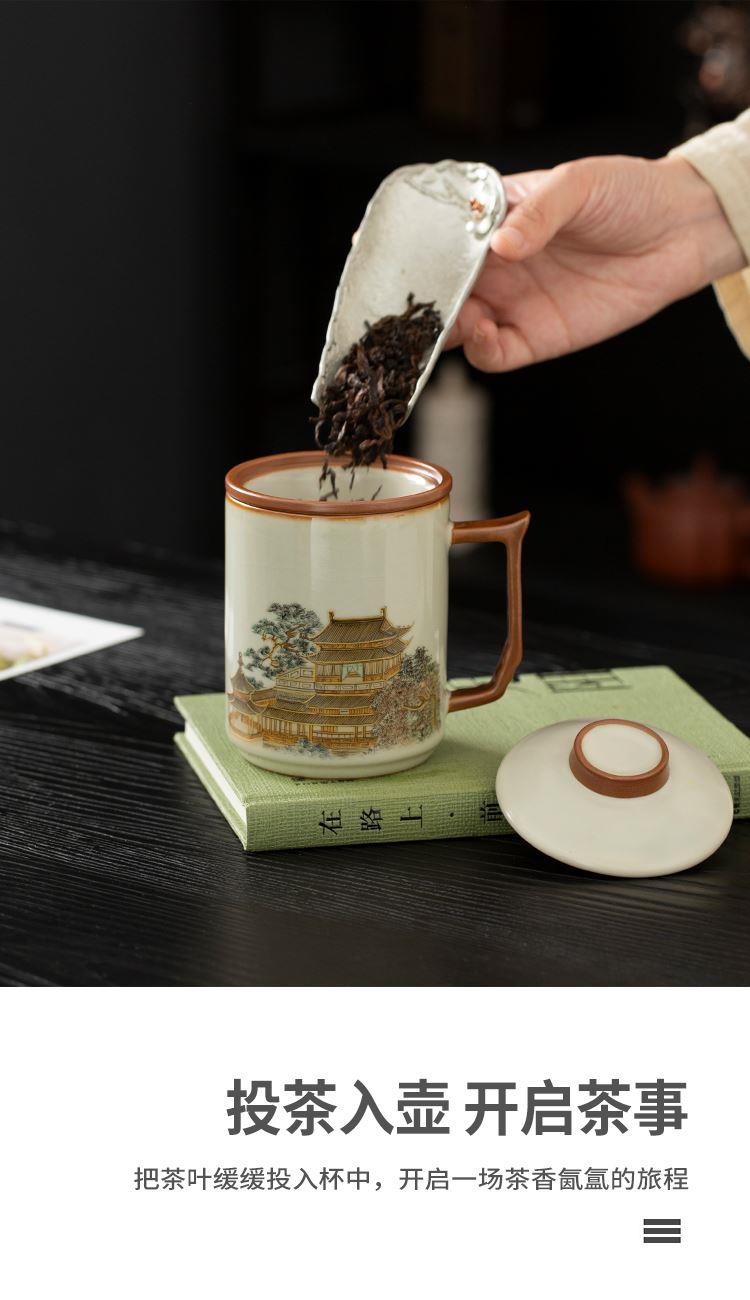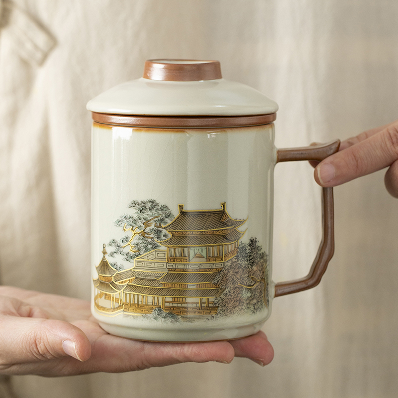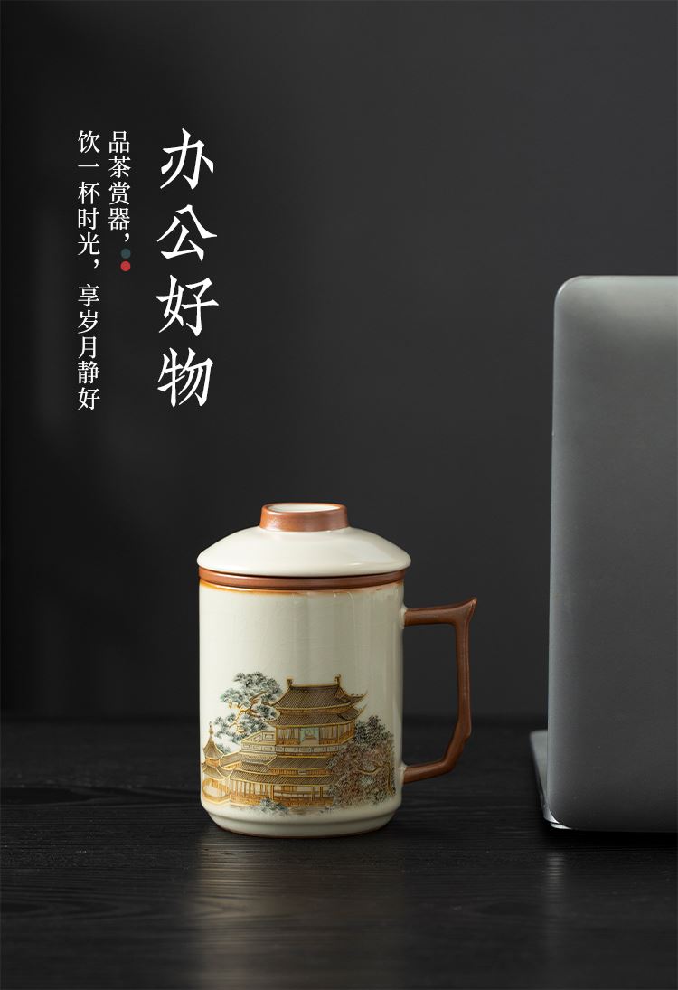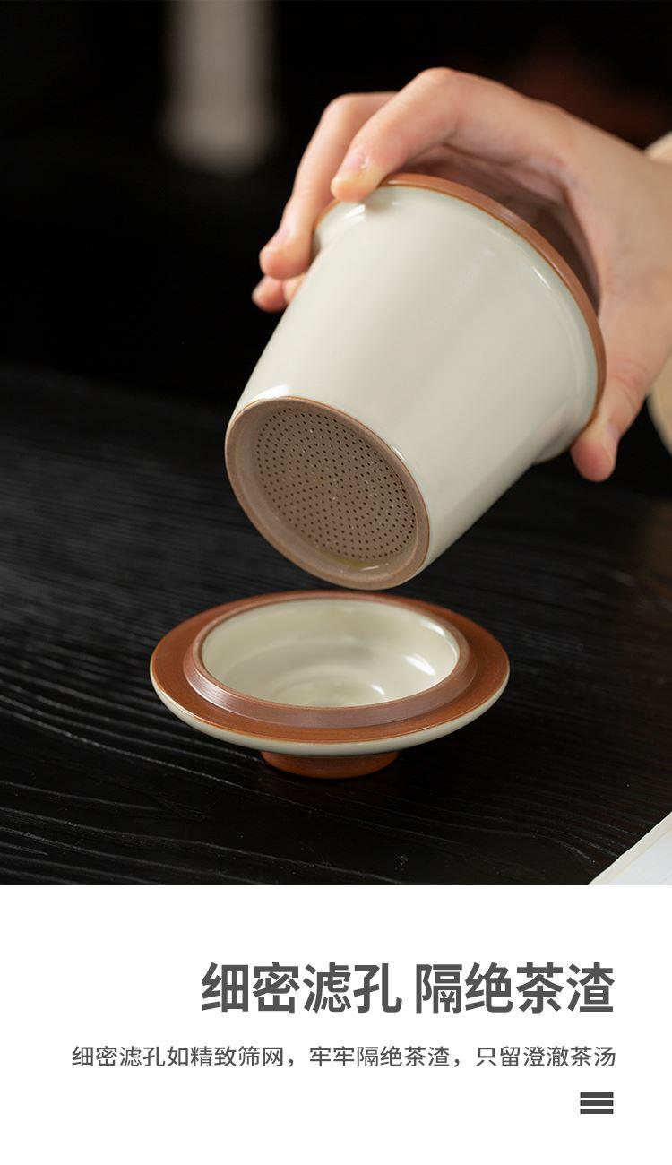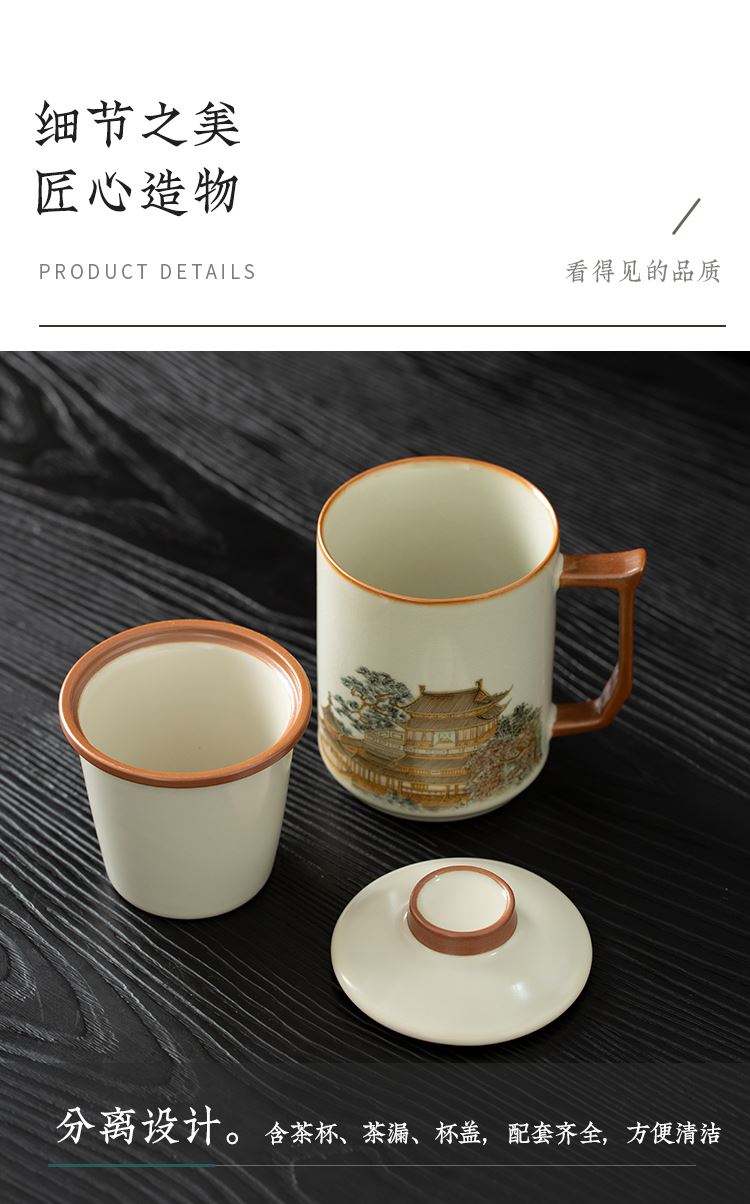 云博陶瓷汝窑黄鹤楼办公杯过滤水杯三件套中国风节日礼品随手礼
