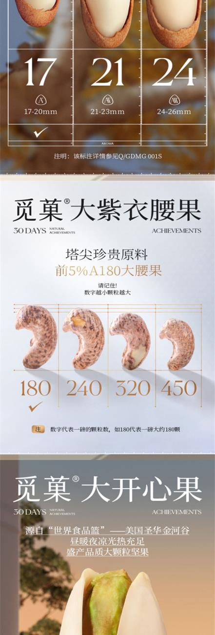 晚松A+138g 开心果248g A180大紫衣腰果268g 大碧根果248g 夏威夷果258g 巴旦木仁320g