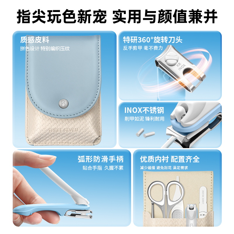 777指甲刀套装360°旋转指甲刀套装5件套PL056蓝 礼品已成功加入PPT!
