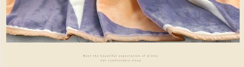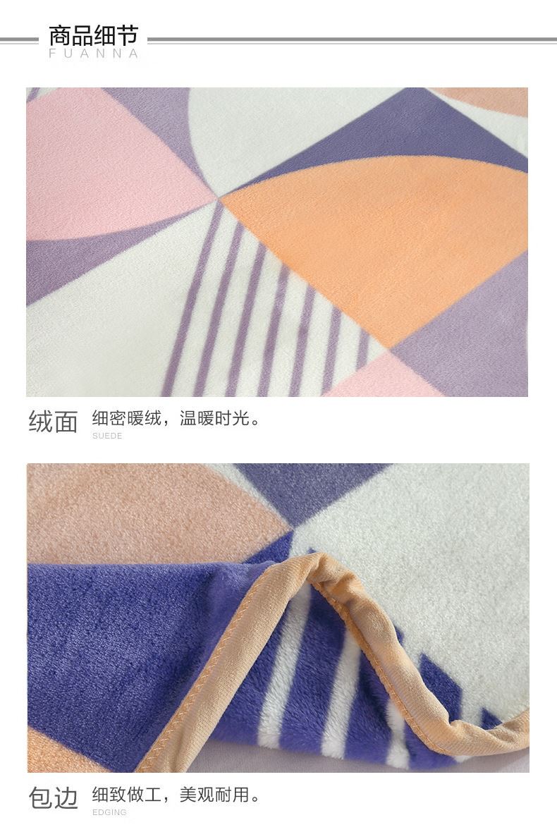规格:150*200cm 面料:雪貂绒 克重:900g 执行标准:FZ/T61002-2019 安全类别:GB18401-2010 B类 1.雪貂绒柔软亲肤,绒毛舒适。蓄热保暖如春天般的温暖。面料经过无静电处理,健康舒适环保。同时采用绿色环保印染工艺,持久鲜艳; 2.简约设计,使得毯子更显档次,更显时尚。精致的包边工艺,做工精细,针脚细密,不易脱线,牢固耐用。