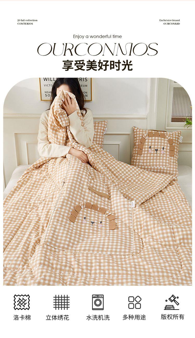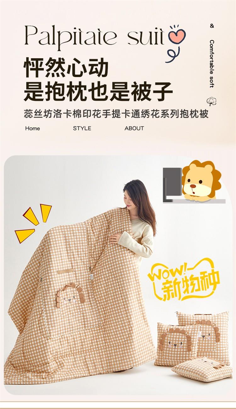 蕊丝坊家纺洛卡棉印花手提卡通绣花系列抱枕被