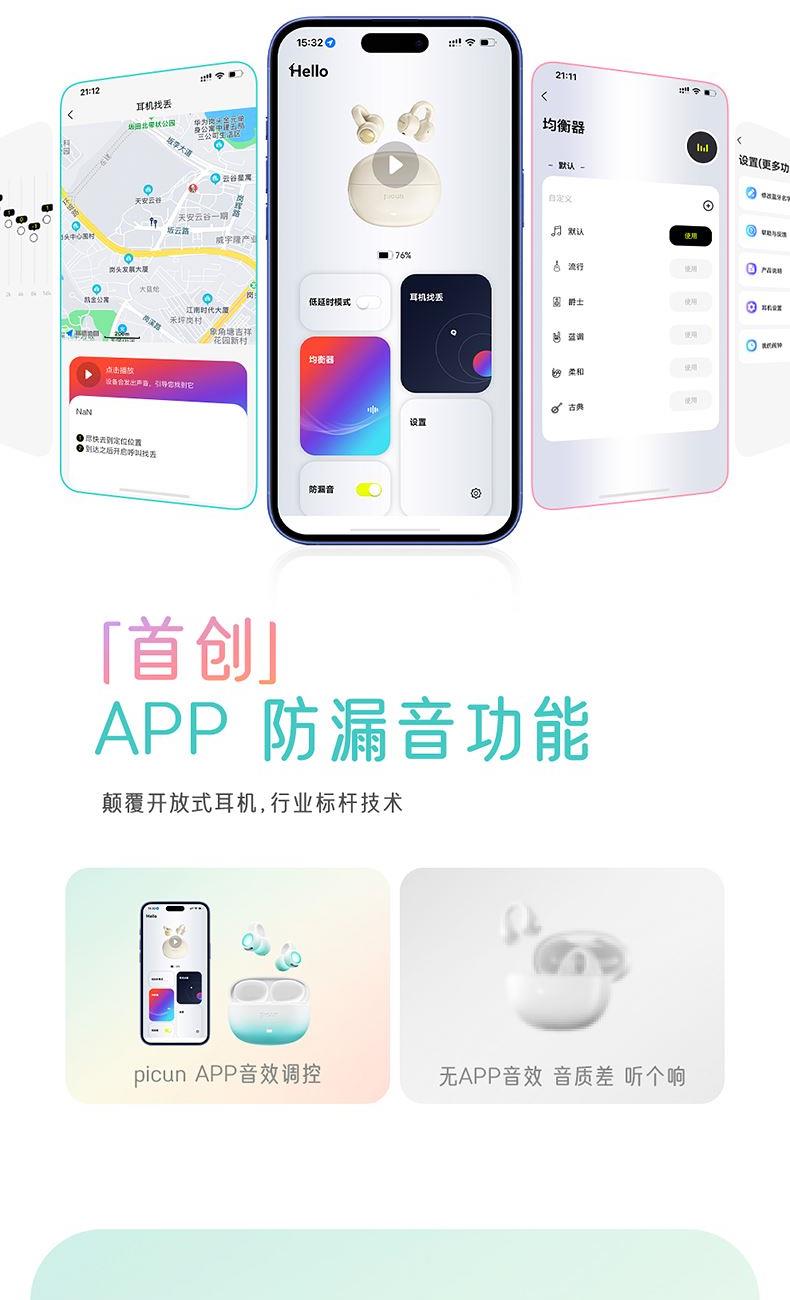 蓝牙方案 : JL6973 蓝牙版本 : V6.0 接受距离 : 10m 频响范围 : 20HZ- 20KHZ 电池容量: 28mA /250mA 使用时间(70%音量:≈4h 喇叭尺寸 : 13mm 喇叭灵敏度: 100±3db 1、支持【picun品存】APP智能互联控制 2、轻盈小巧,单只 3.9 克 3、软弹耳夹,久戴也舒适 4、澎湃音质,重低音出色