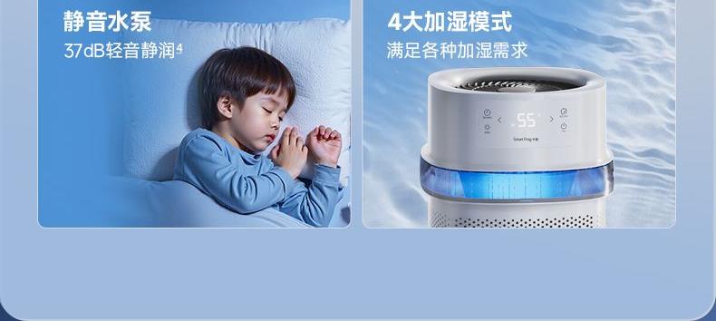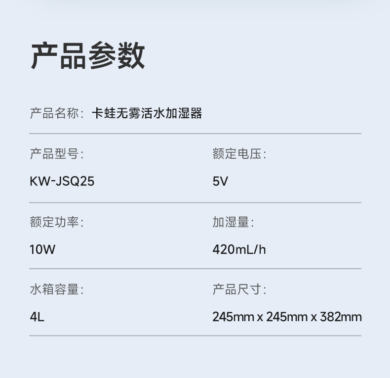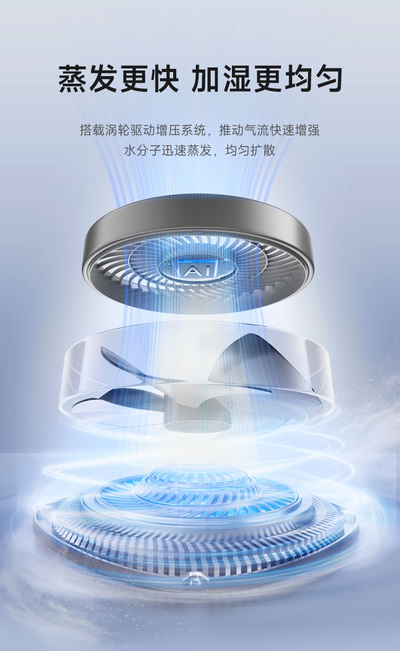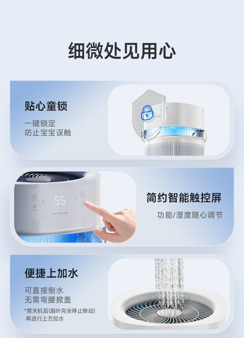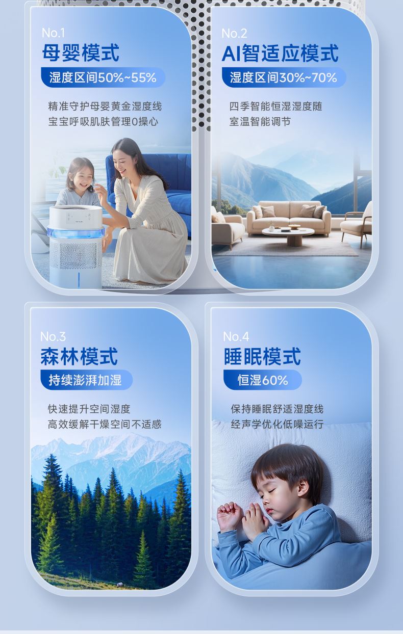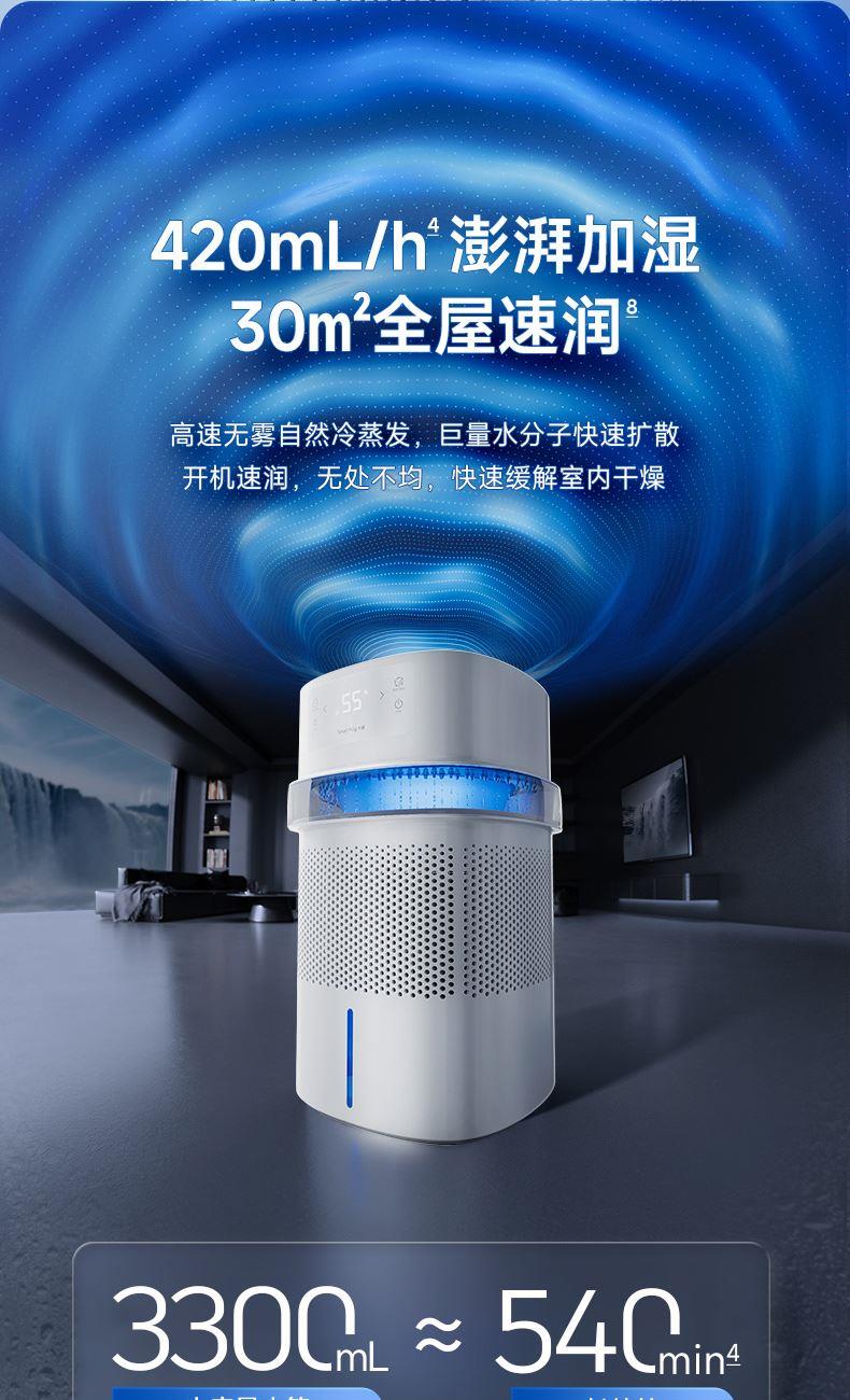纯净守护 洁净呵护宝宝和敏感人群 高速无雾自然冷蒸发 巨量水分子快速扩散 4L大容量水箱