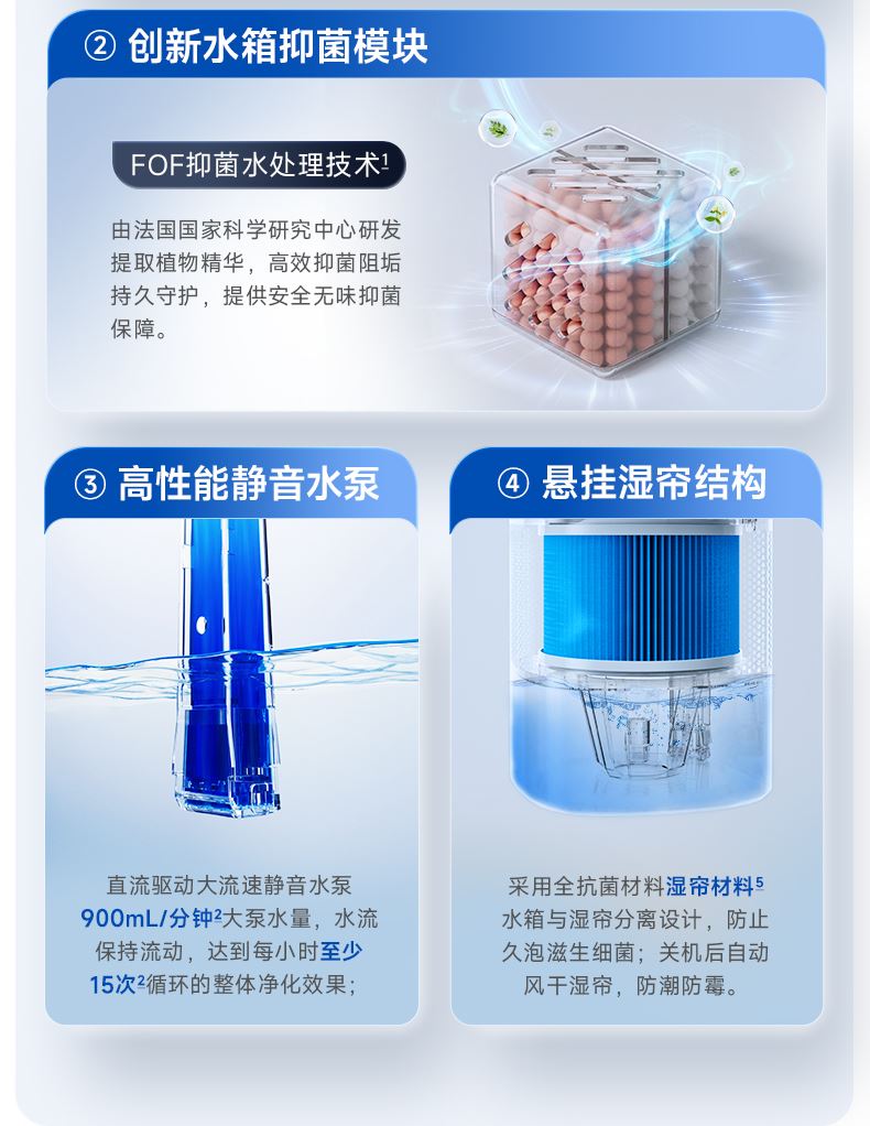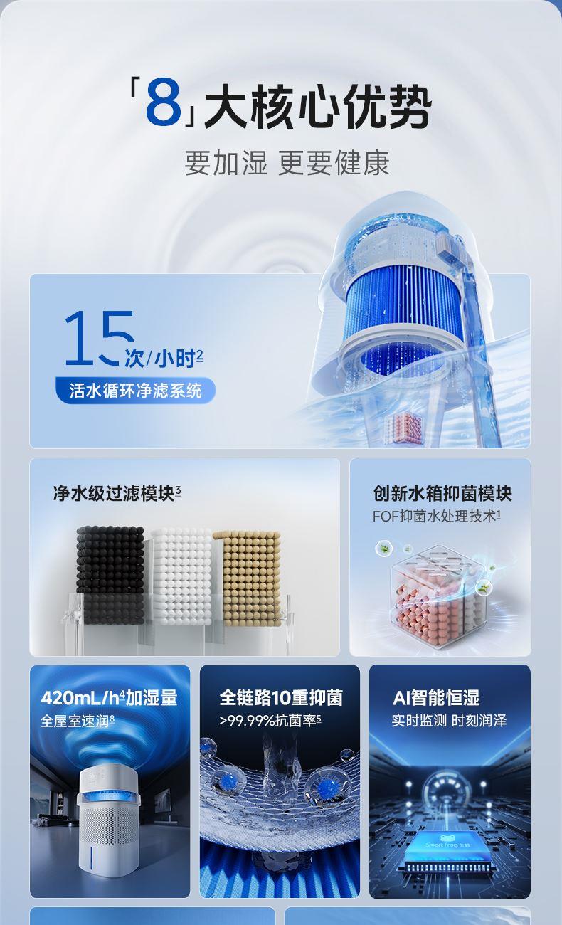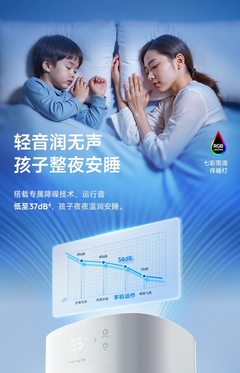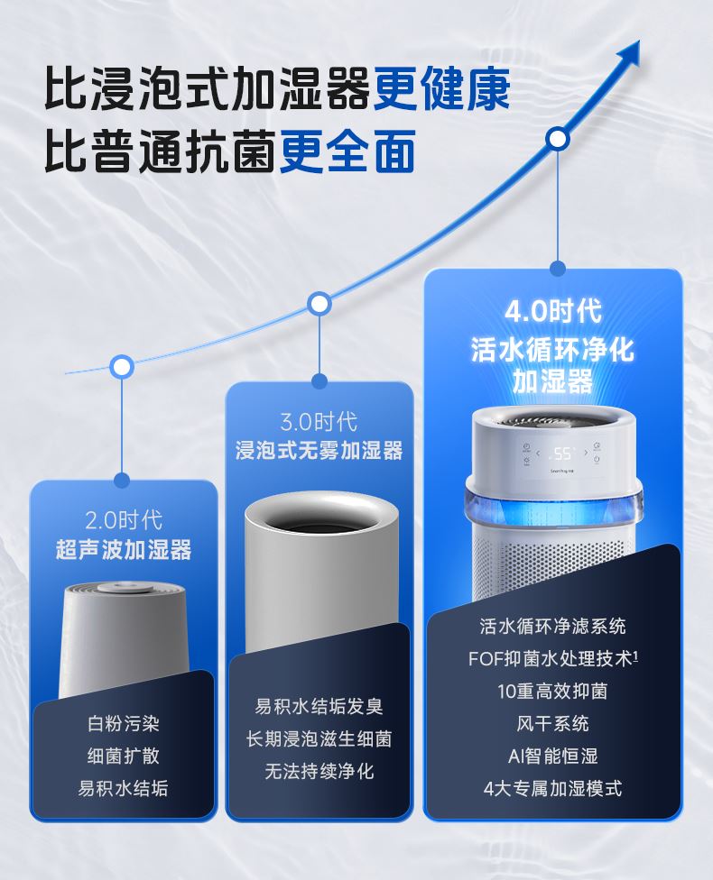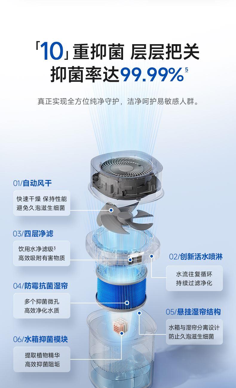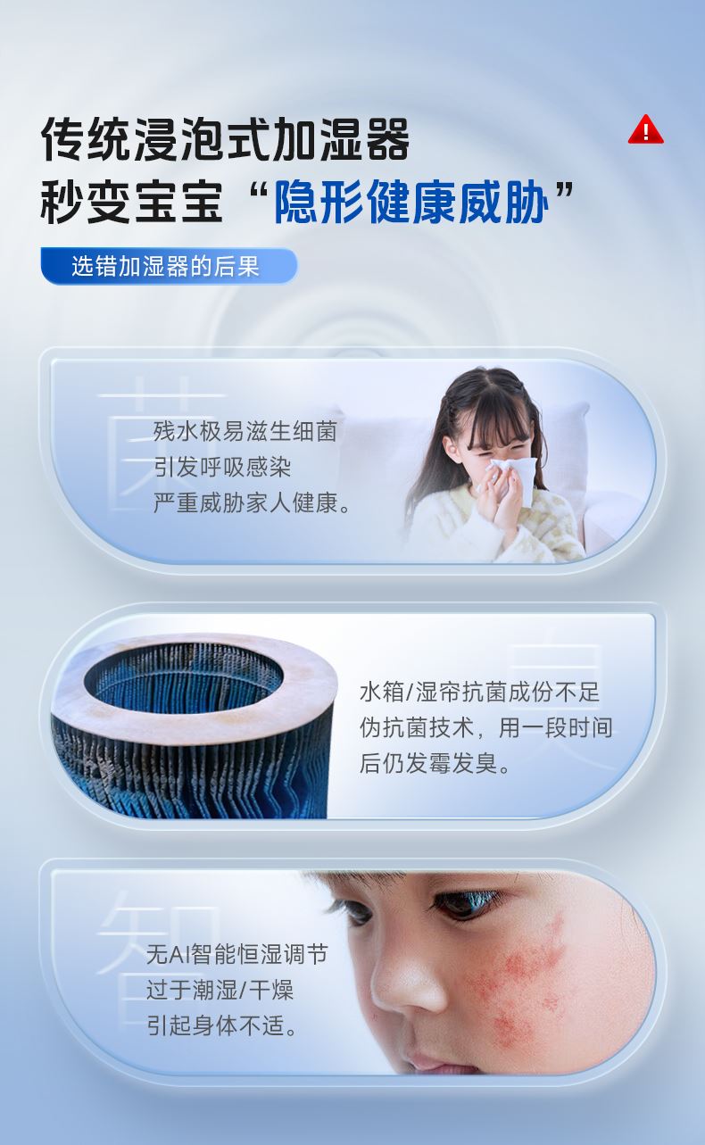 纯净守护 洁净呵护宝宝和敏感人群 高速无雾自然冷蒸发 巨量水分子快速扩散 4L大容量水箱