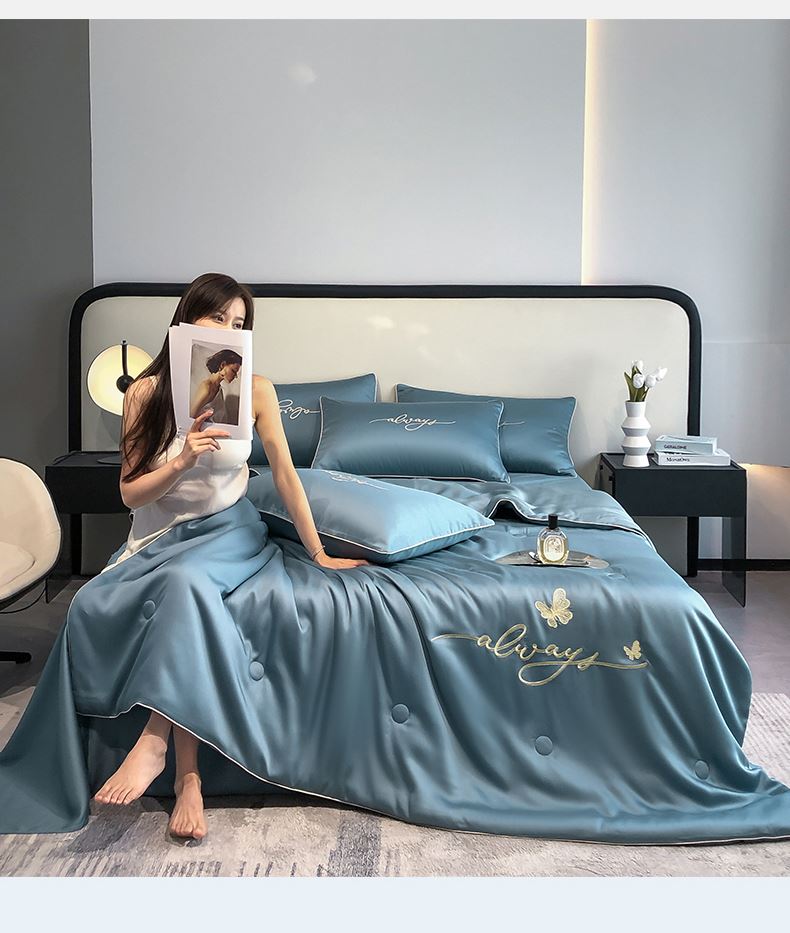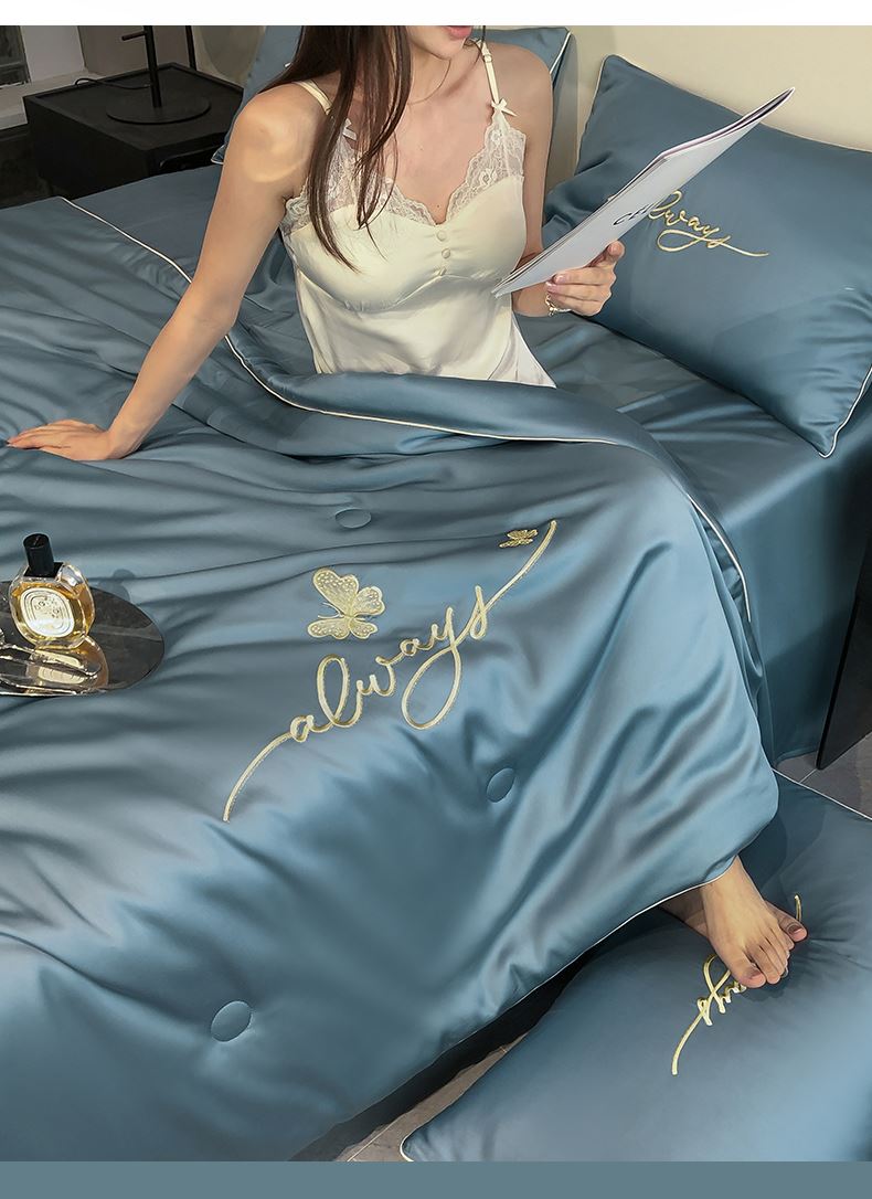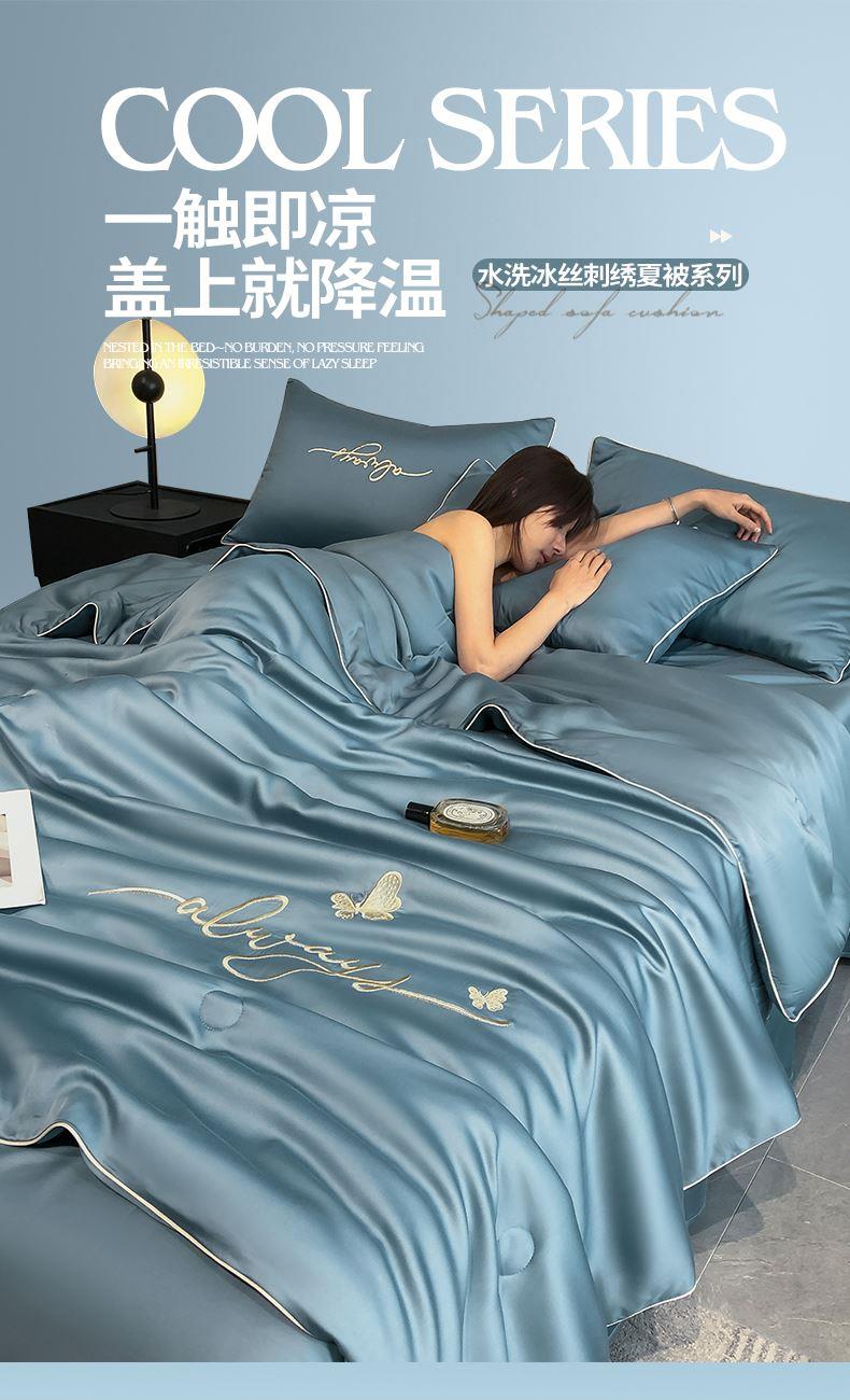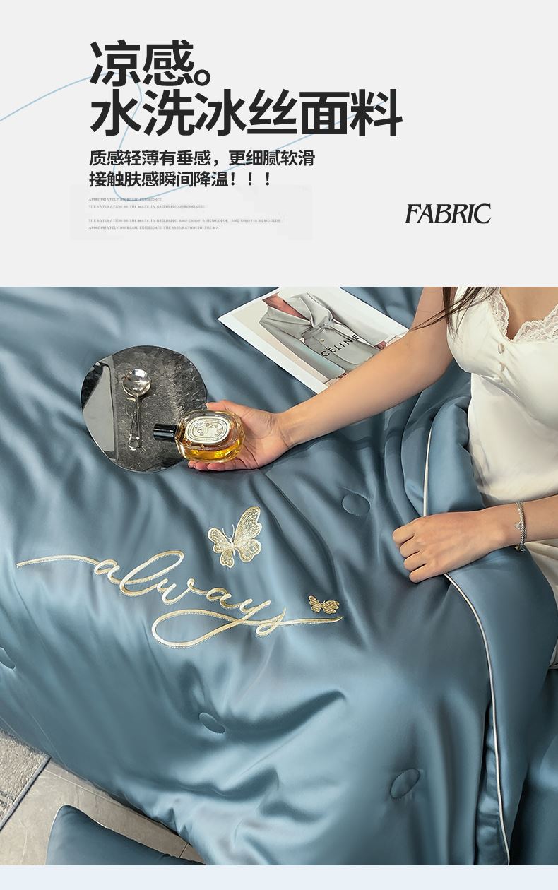 百丽安娜水洗真丝刺绣凉感夏被-宾利兰