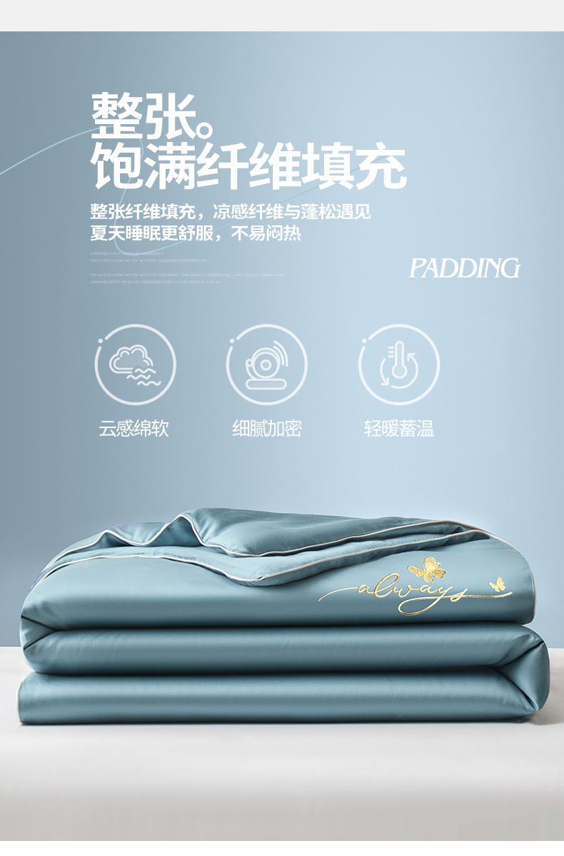 面料:水洗真丝(聚酯纤维) 填充:聚酯纤维(整张棉) 规格:200cm*230cm 水洗真丝丝面料,凉滑触感,曼妙柔滑媲美真丝质地,肌肤沉浸式奢柔呵护。