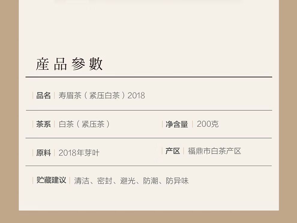 年迹 · 年份福鼎寿眉白茶饼2018年