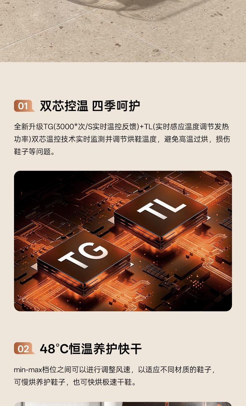 NTC智能调温,48℃恒温,安全放心,不挑鞋型,双档烘干,多场景适用, 阴雨天/下雨淋湿/运动出汗/寒冷冬季/