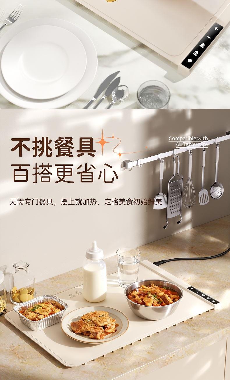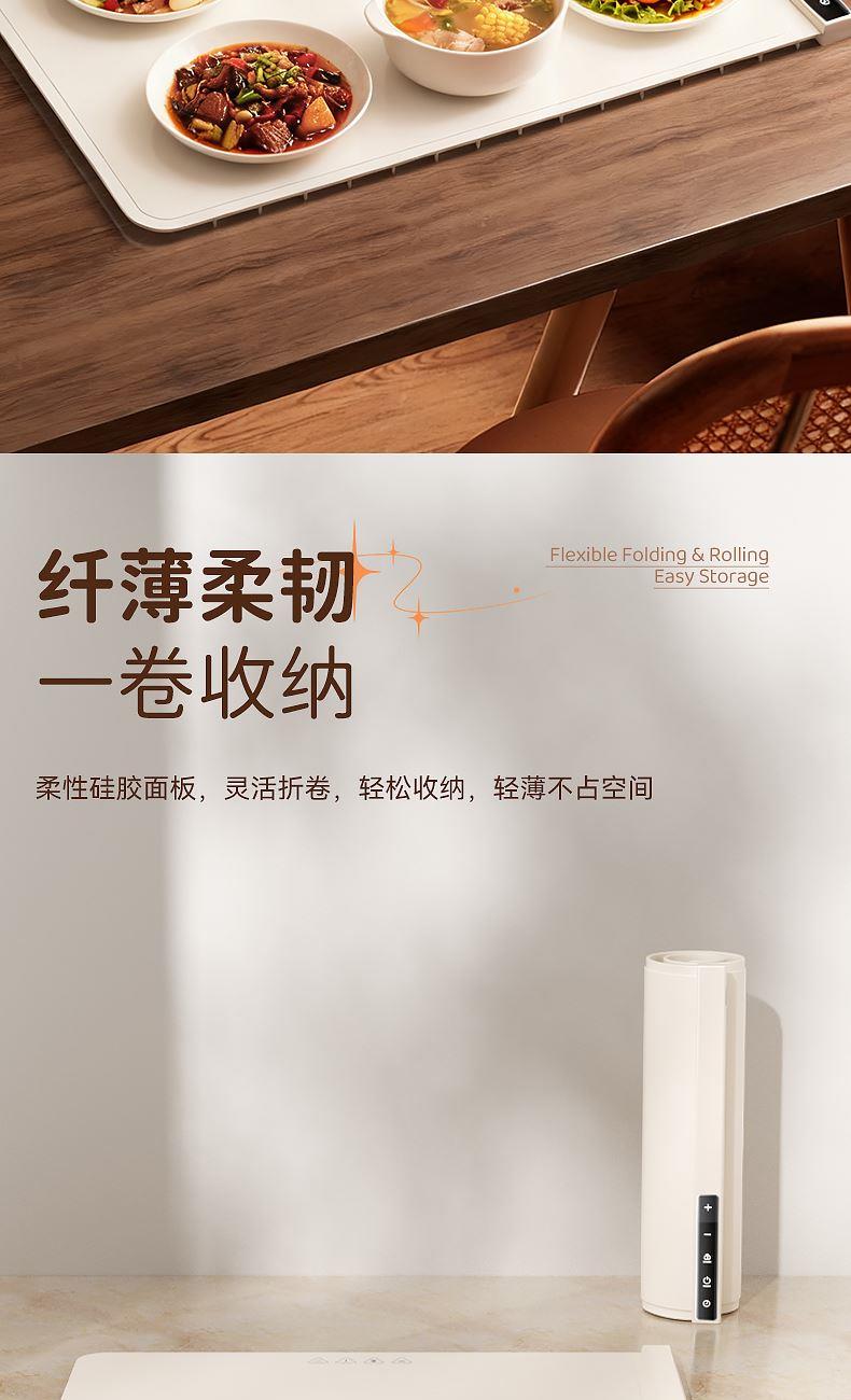 1-4小时智能定时保温,柔性可卷,一卷收纳,不挑材质(玻璃陶瓷不锈钢锡纸奶瓶),无需专门餐具,摆上就加热