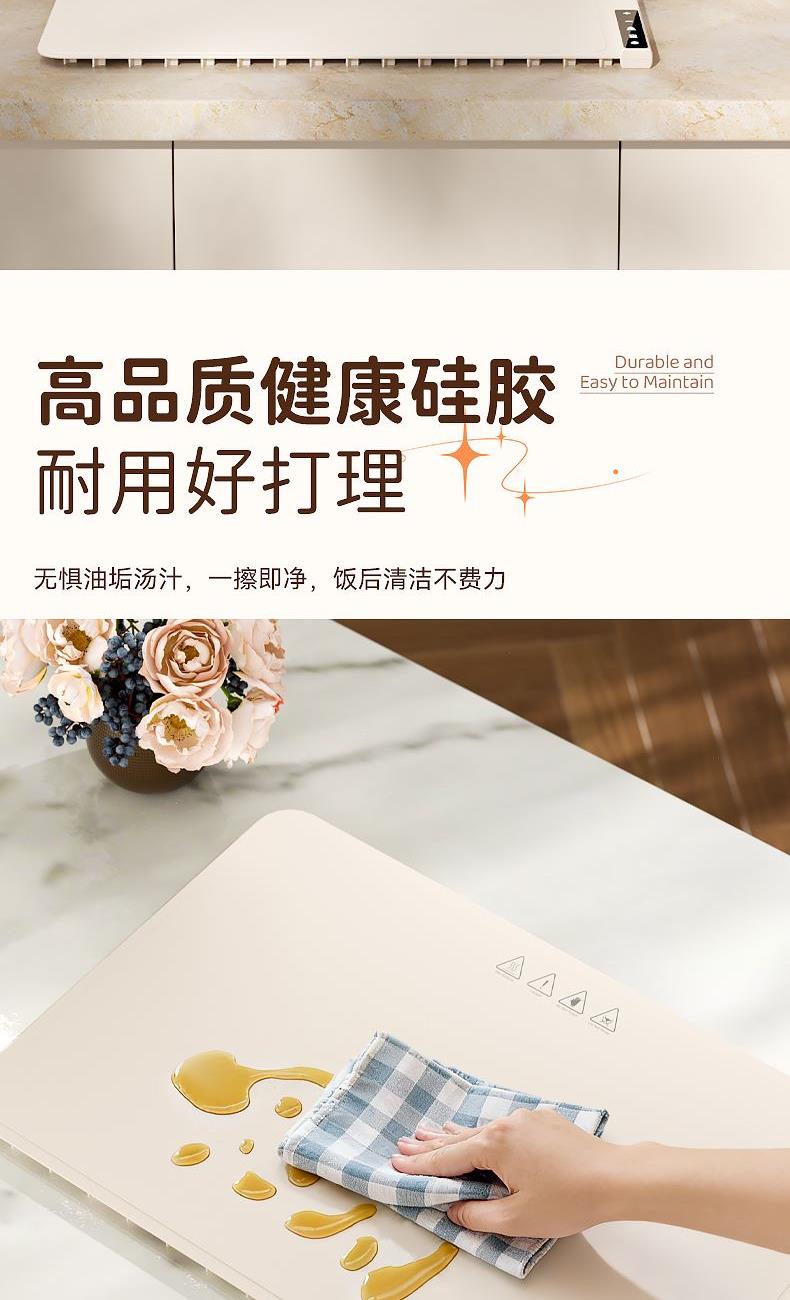 隔热防止烫坏桌面,防烫边缘,误触不烫手,防滑硅胶柱,安稳置于桌面,高品质硅胶面板,重油污一擦即净,