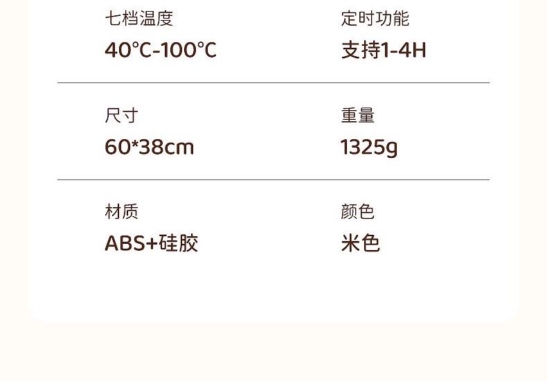 功率:330W定时功能:支持,1H、2H、3H、4H, 12小时自动关机产品档位:7档,预热5-10分钟
