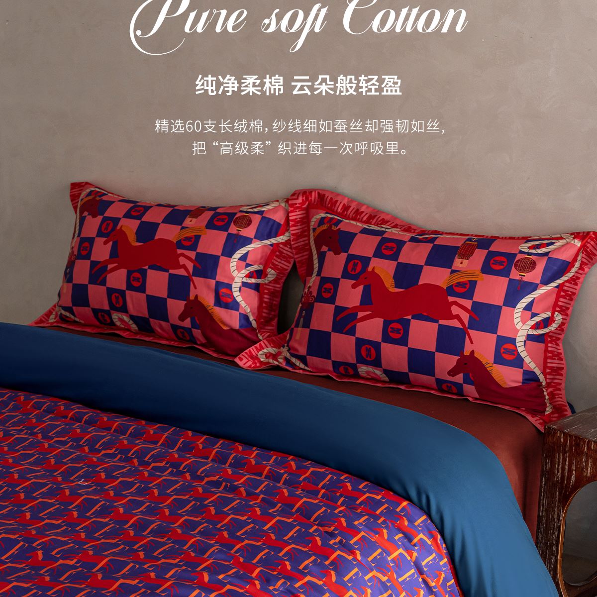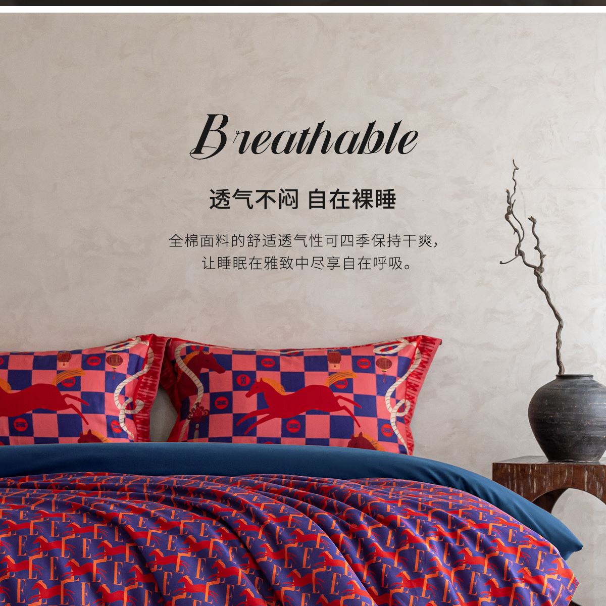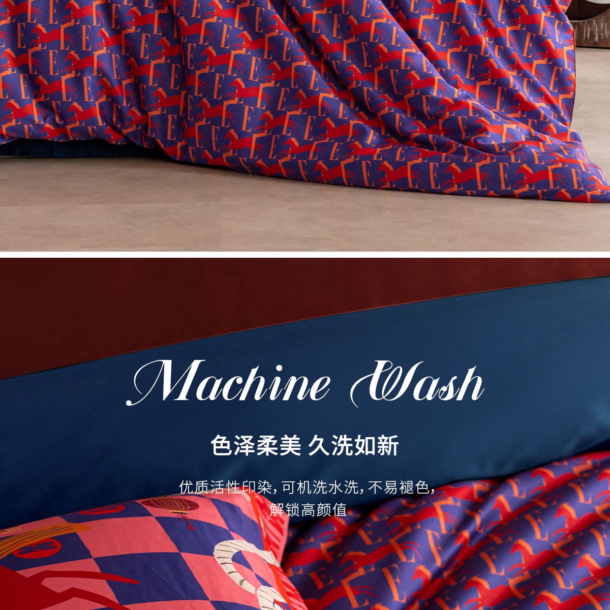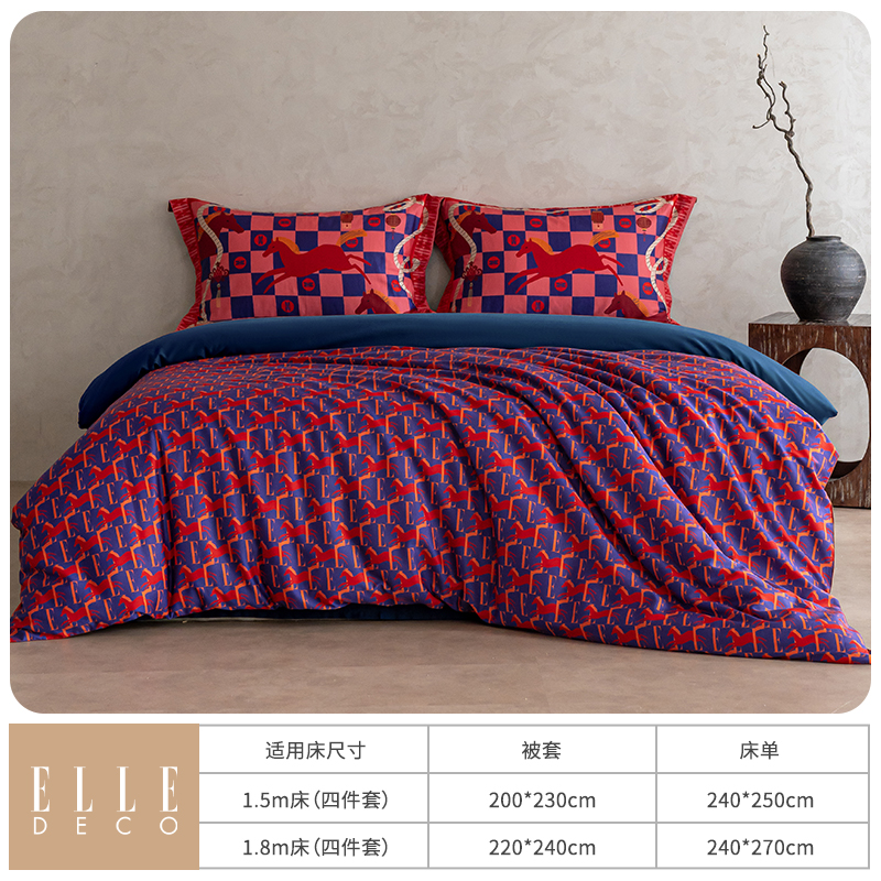 商品参数: 面料:100棉 规格:被套:200*230cm*1 床单:240*250cm*1 枕套:48*74cm*2 礼盒尺寸:42.5*35*11cm 纸箱尺寸:55.5*42.5*36.5cm 69码:6977317190059 马年系列,马为主题搭配中国节和ELLE元素,自在心意