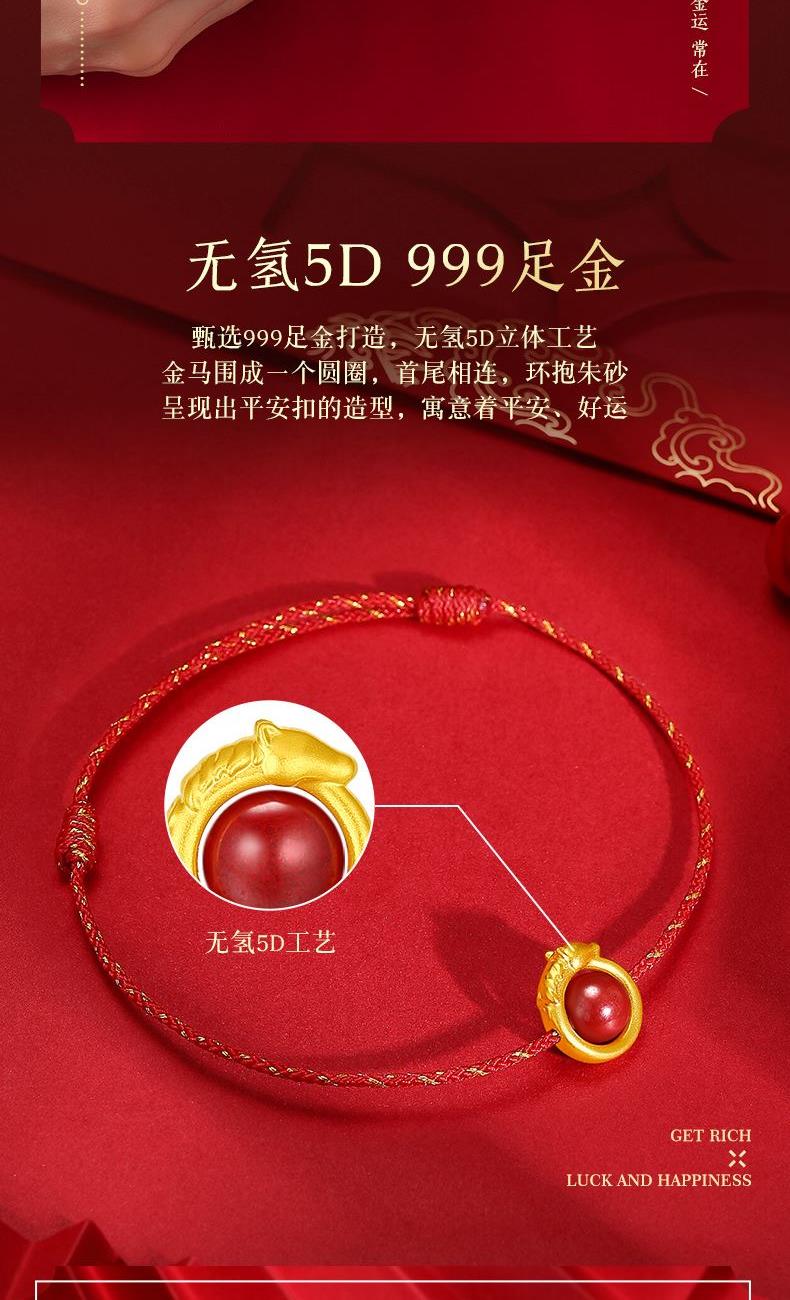 聚运鑫黄金来财马朱砂红绳转运珠手串