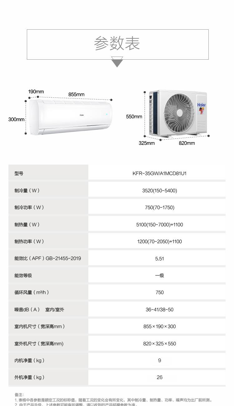 海尔1.5匹一级能效空调KFR-35GW/A1MCD81U1