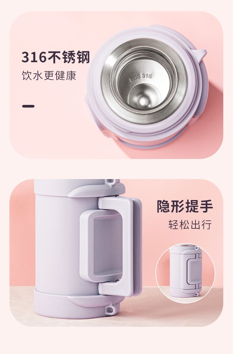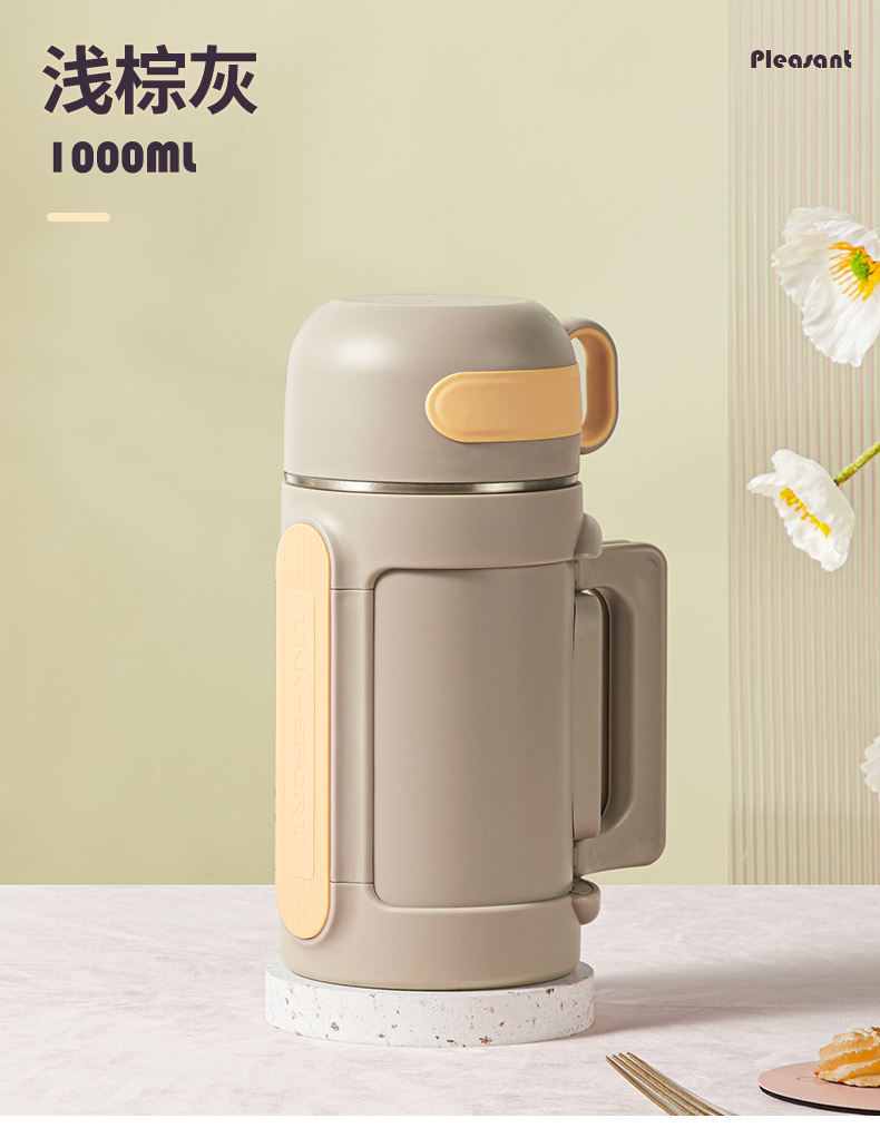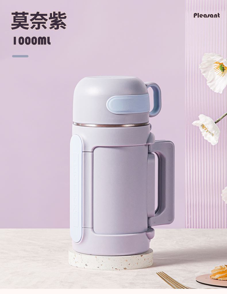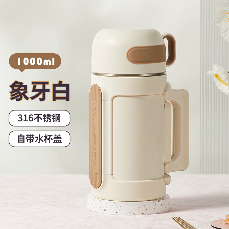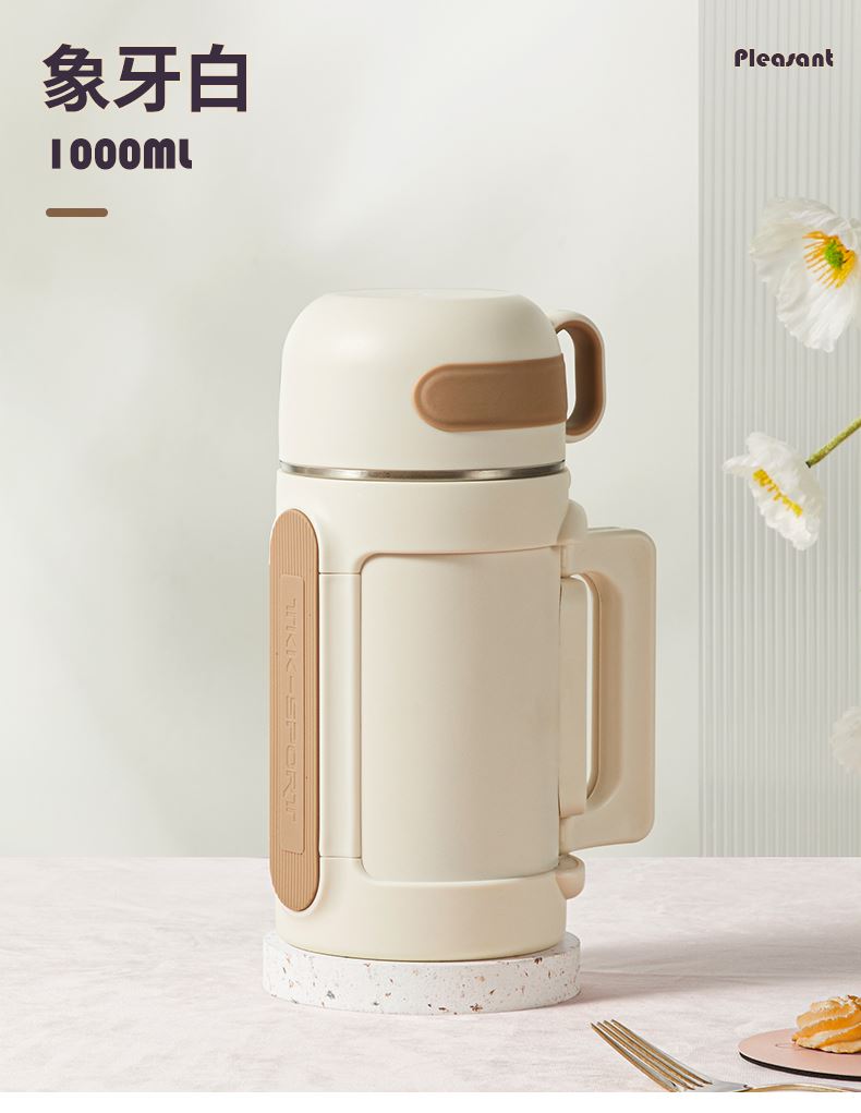 商品容量:1000ml 杯身材质:316不锈钢 杯盖材质:304 商品净重:950G ★ 优选316不锈钢材质,耐高温、抗腐蚀 ★ 大容量,出门在外,愉快补水 ★ 下压开盖,流畅出水 ★ 可折叠把手,兼顾美观和实用 ★ 多种温暖色系搭配,化身秋冬暖心伙伴 ★ 侧面大面积防滑条,平放不翻滚 ★ 防摔防漏设计,360°防漏 ★ 侧边配手提挂绳,户外便捷携带
