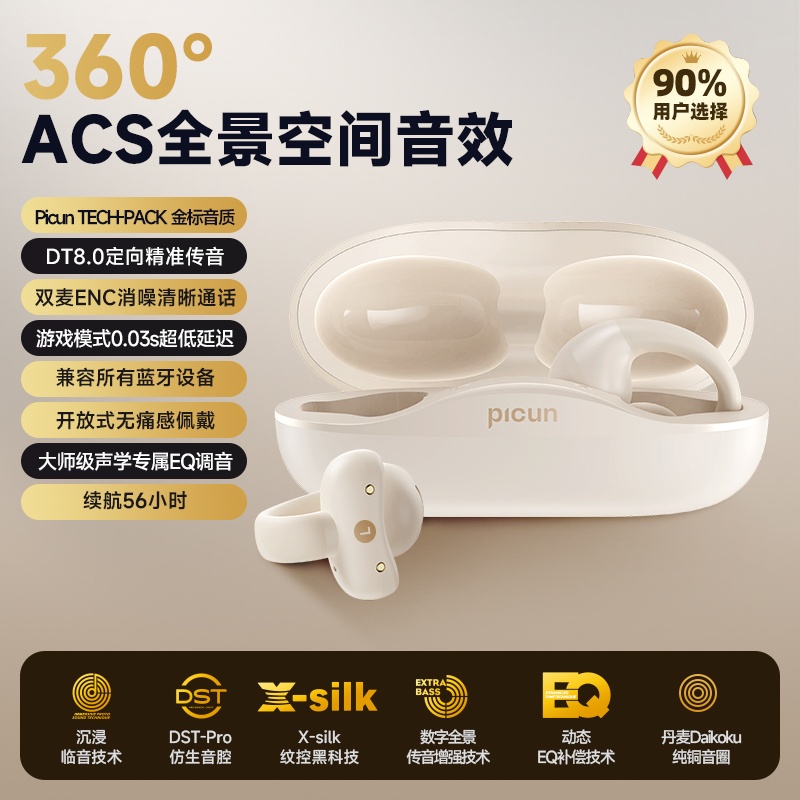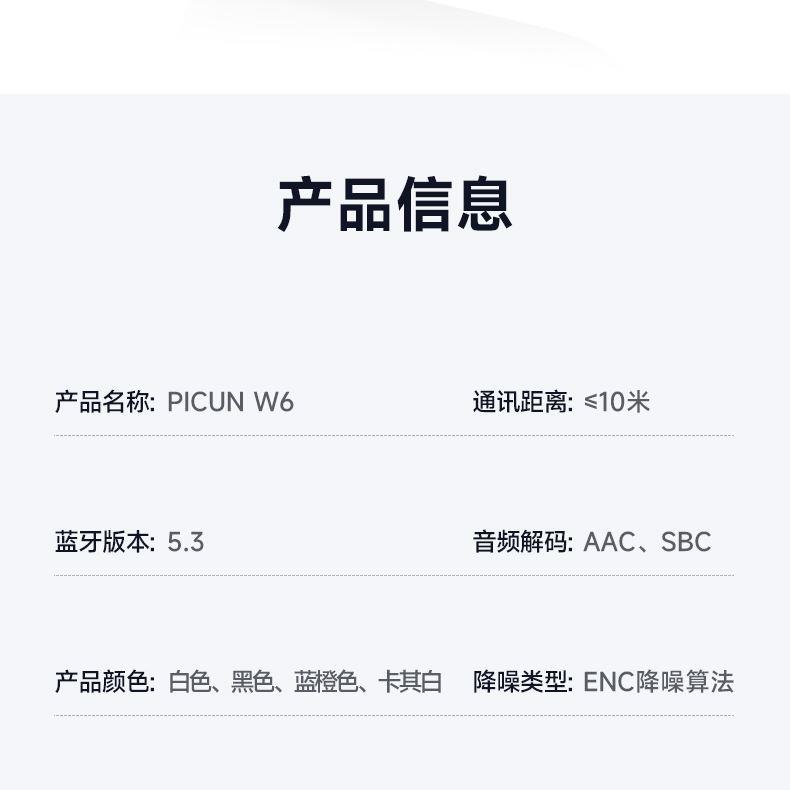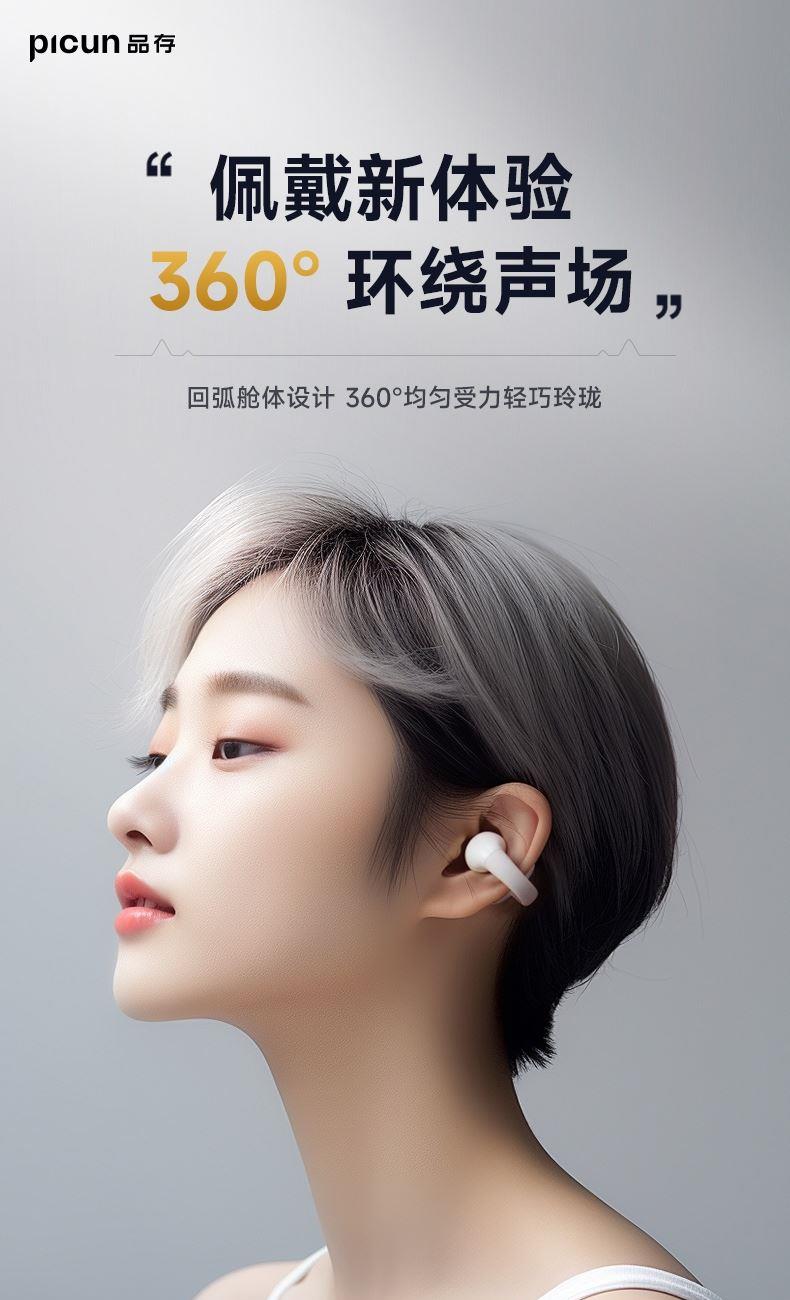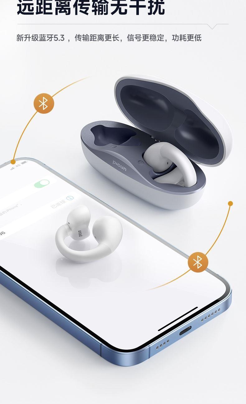 picun品存耳夹式OWS耳机W6卡其白