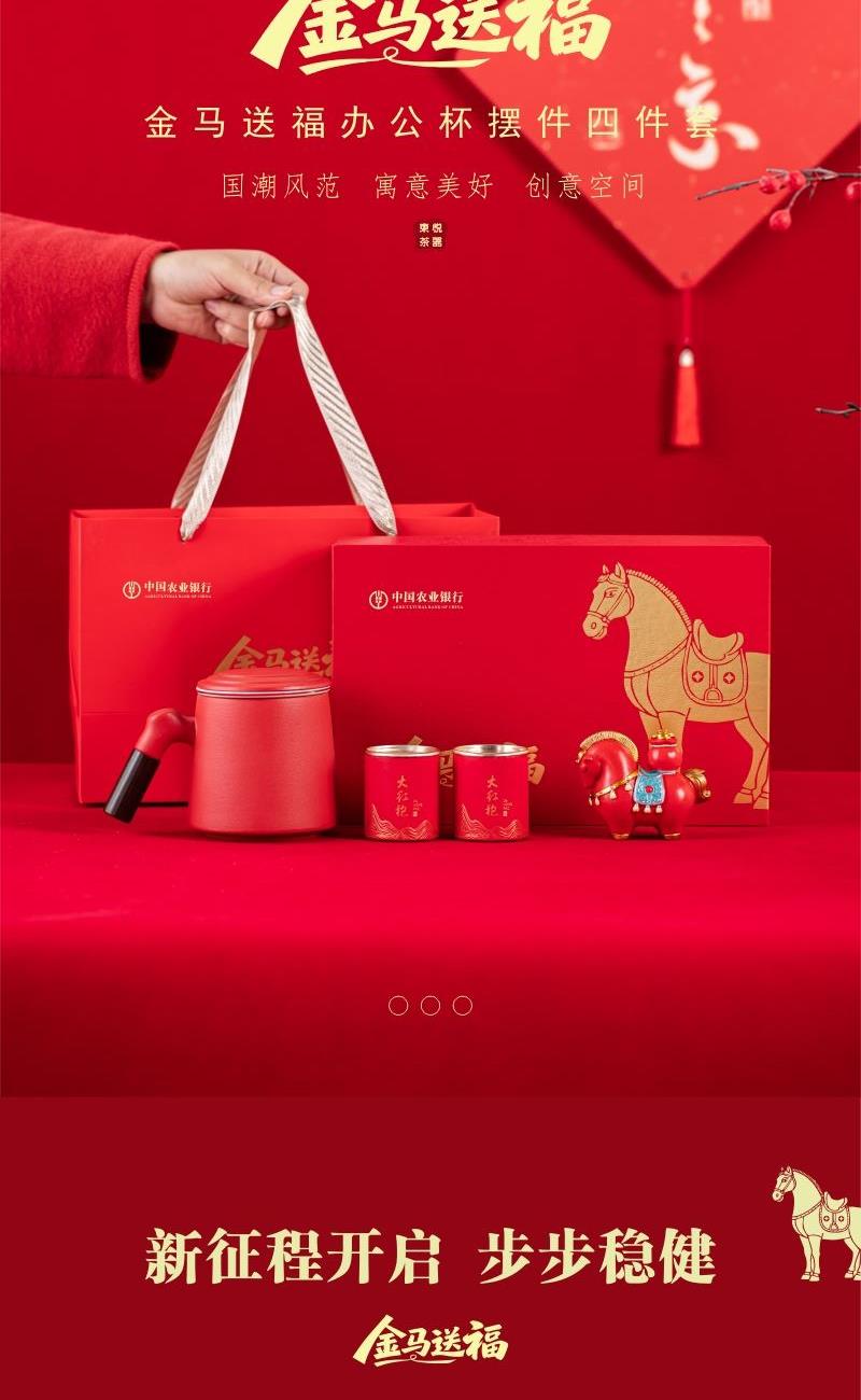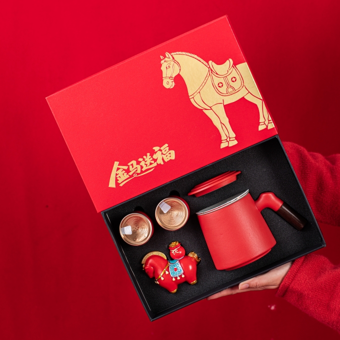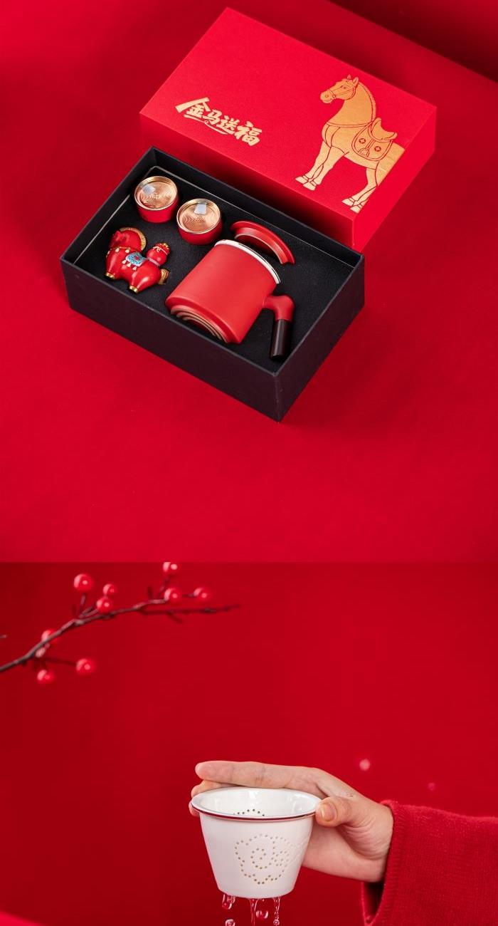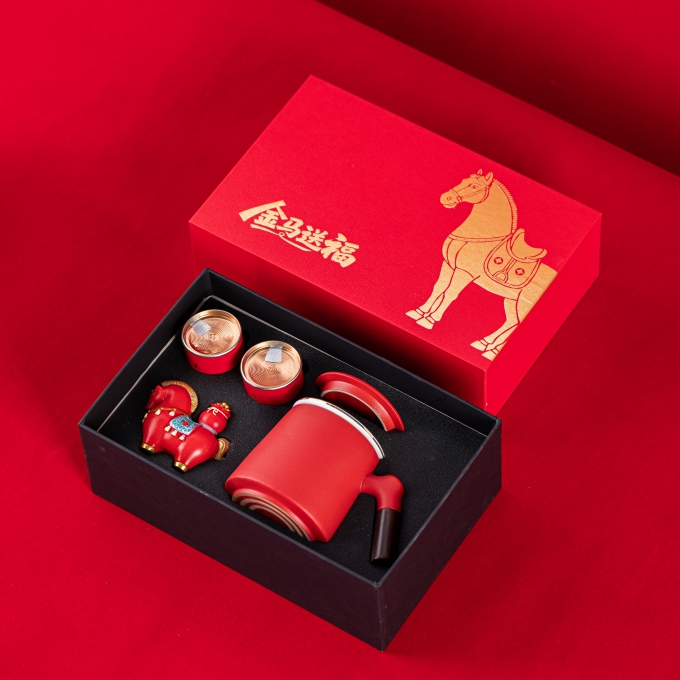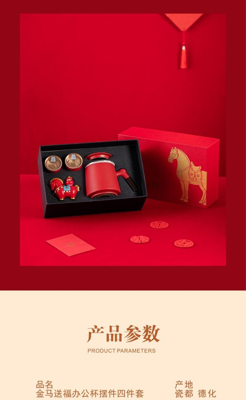 开门红年会茶具礼品金马送福办公杯摆件四件套