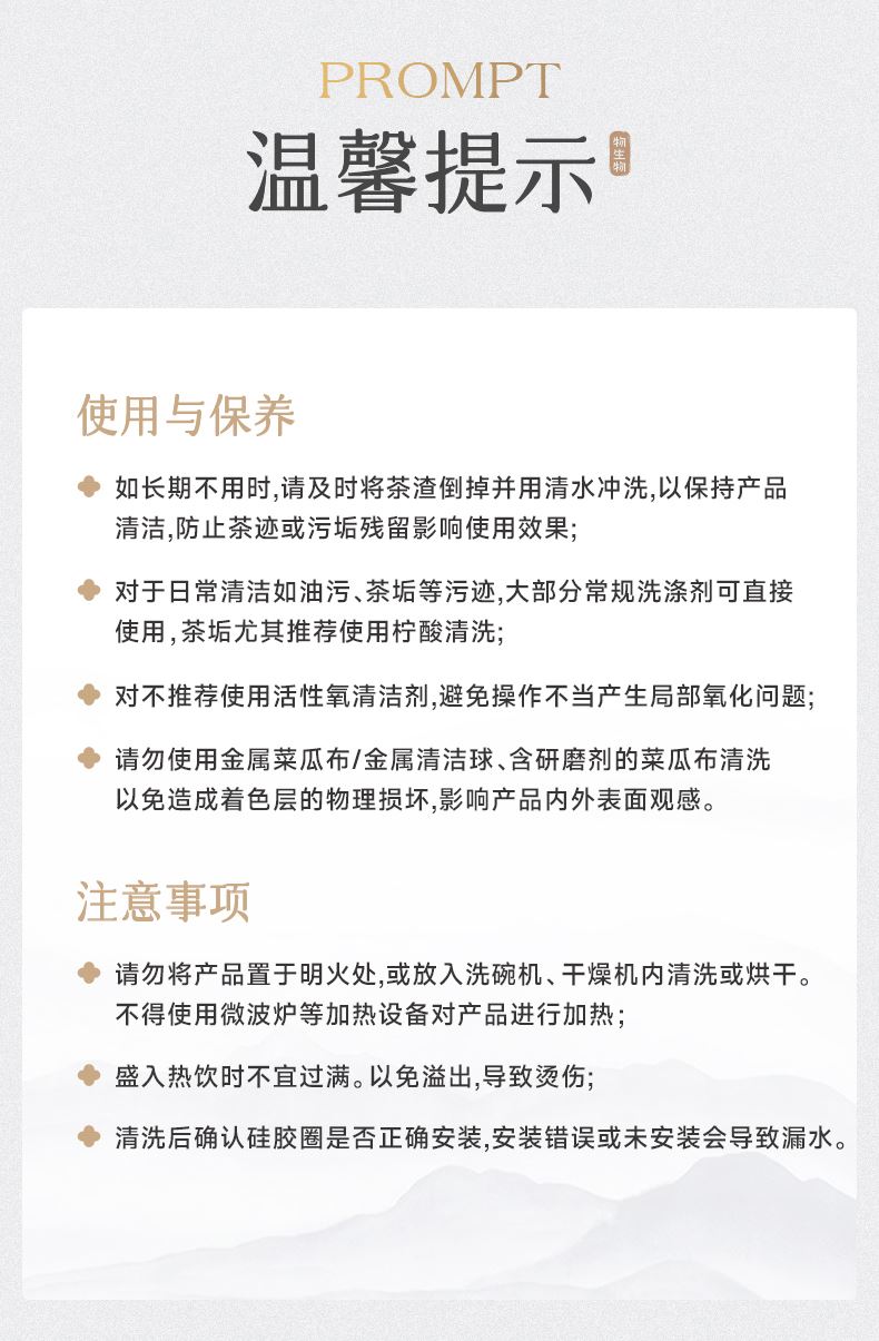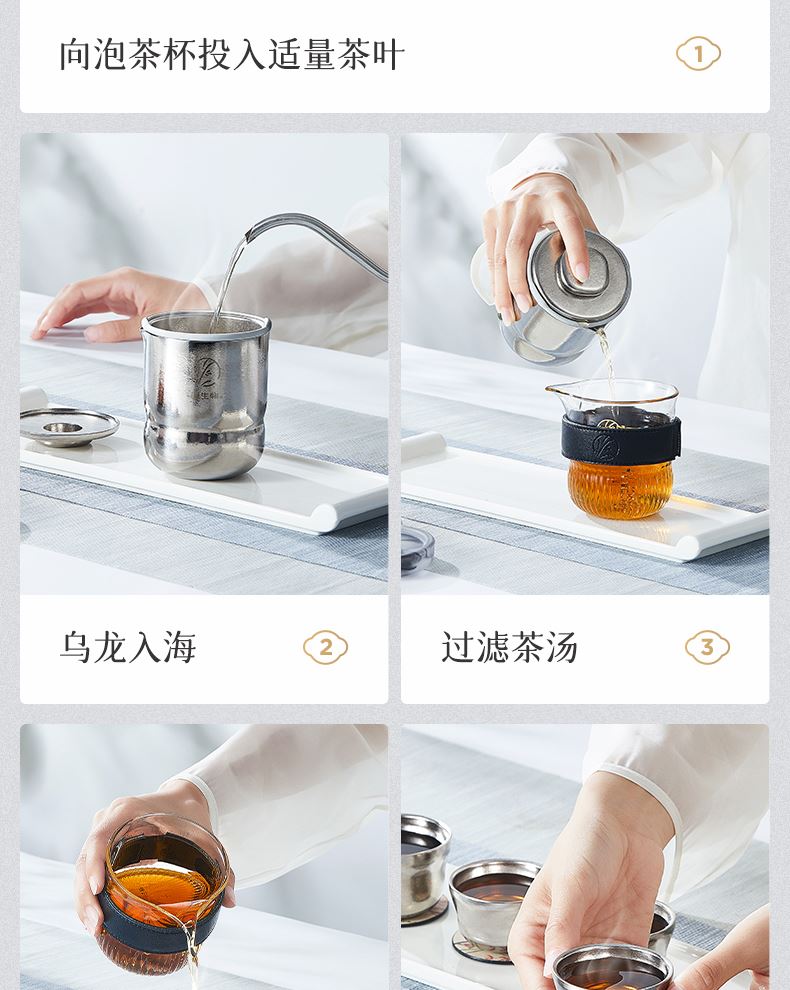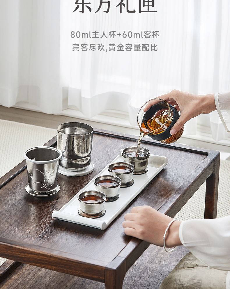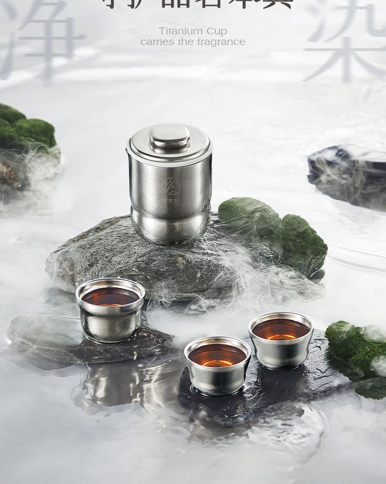 颜色:本色套装 容量:公道杯330ml、钛杯300ml、主人杯80ml、客人杯60ml 材质:茶巾一绵柔刺绣、防烫杯套圈一PU材质手提包一PU烫金材质、杯垫一硅胶/陶瓷公道杯一高硼硅玻璃、密封圈一食品级硅胶材质主人杯/客人杯/品茗杯/茶滤一双层航天级TI钛金属 重量:2633g(含包装) 1.纯钛材质打造,健康环保。 2.两种泡茶方式,随心选择。 3.镂空茶漏设计。 4.精美商务礼盒,礼赠佳选。
