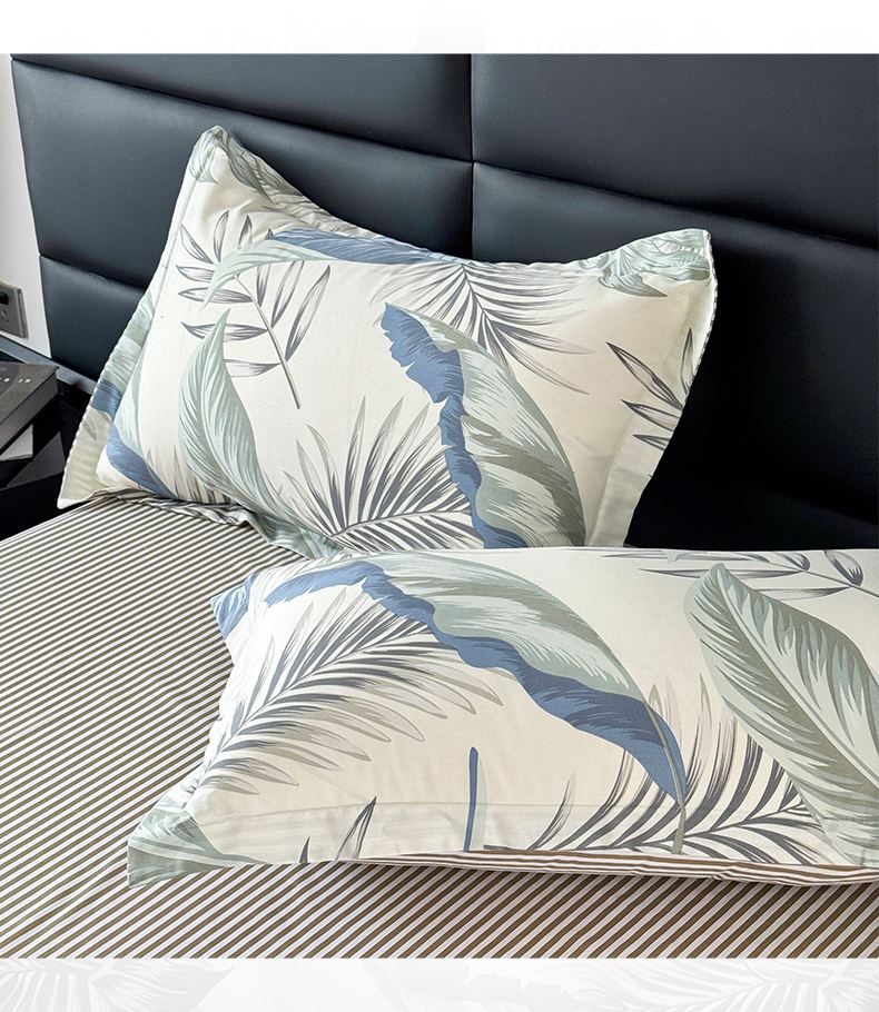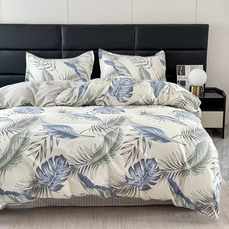 被套:200*230cm 床单:230*245cm 枕套:48*74cm*2 面料:全棉 执行标准:GB/T22796-2021 安全类别:GB18401-2010 A类 1.臻选纯棉面料,印染工艺采用活性印染工艺,不起球,不褪色,极具柔软性,在纺纱过程中,增加了精致梳理的程序,疏去软短的纤维,剔除棉花种的杂质,以制造出平滑的纱线,让棉花更有韧性,使人干到柔软。 2.纯棉纤维具有良好的保湿型,透气性能好,使用感觉温暖。