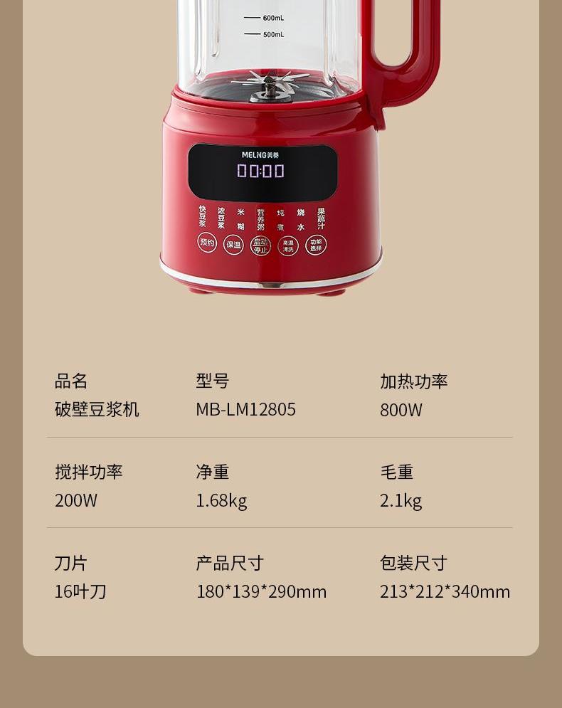 美菱破壁豆浆机MB-LM12805 美菱破壁豆浆机MB-LM12805