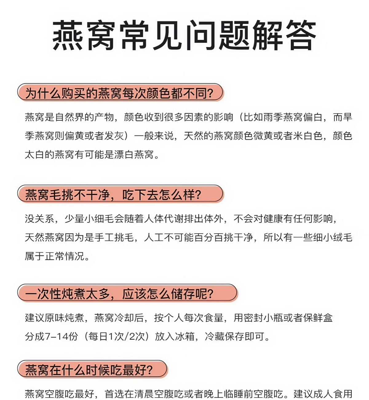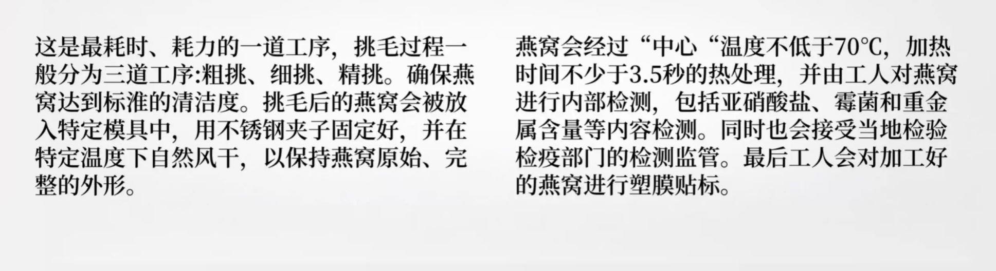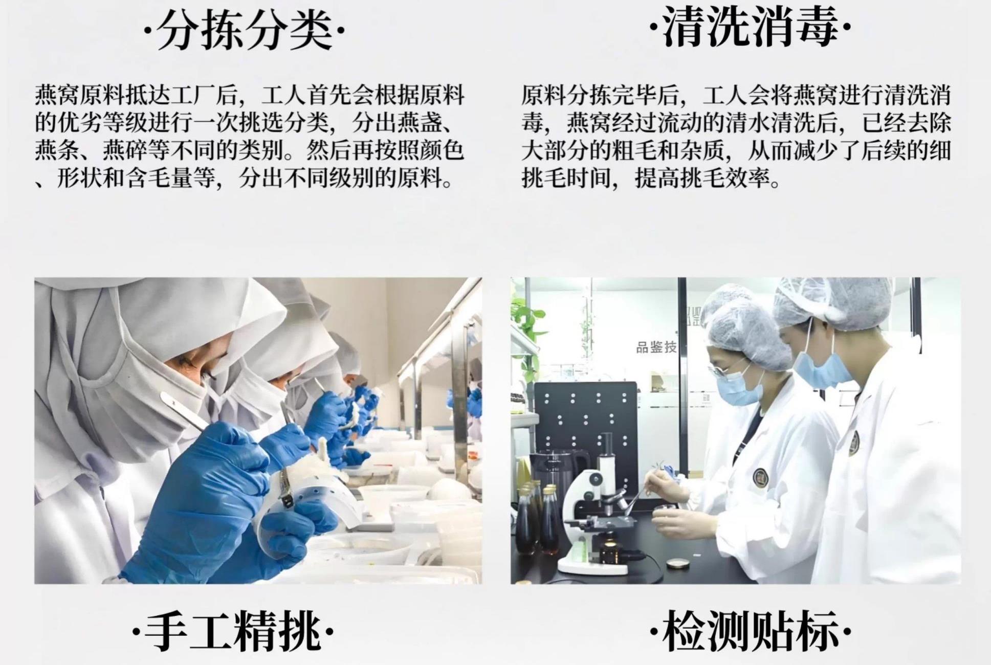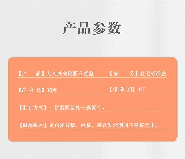 规格:免泡发大盏30克(10盏) 卖点:产品通过预处理技术实现 “免泡发、免挑毛、免清洗” 的便捷性,可直接放入炖盅,加入清水炖煮 20 分钟即可食用,对比传统干盏需 4-6 小时泡发 + 40 分钟炖煮的繁琐流程,效率提升 80% 以上。