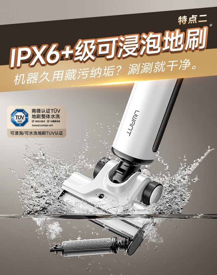产品尺寸:266*265*1105 基站尺寸:367*330*103 产品+基站尺寸:340*329*1120mm 产品毛重:8.3kg 外箱尺寸:740*347*280mm 32微孔精密控水润湿滚刷敷面膜般均匀润泽无水痕 创新结构,贴合挤压滚刷污水源头精控不回流 太空臂速降触地,强力刮污地面干爽无水印 25000Pa强劲虹吸,污水秒清无残留