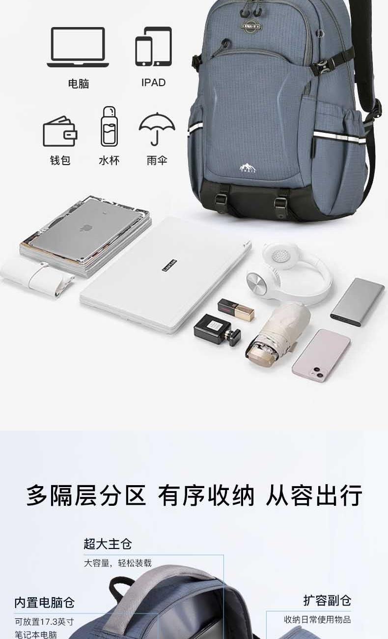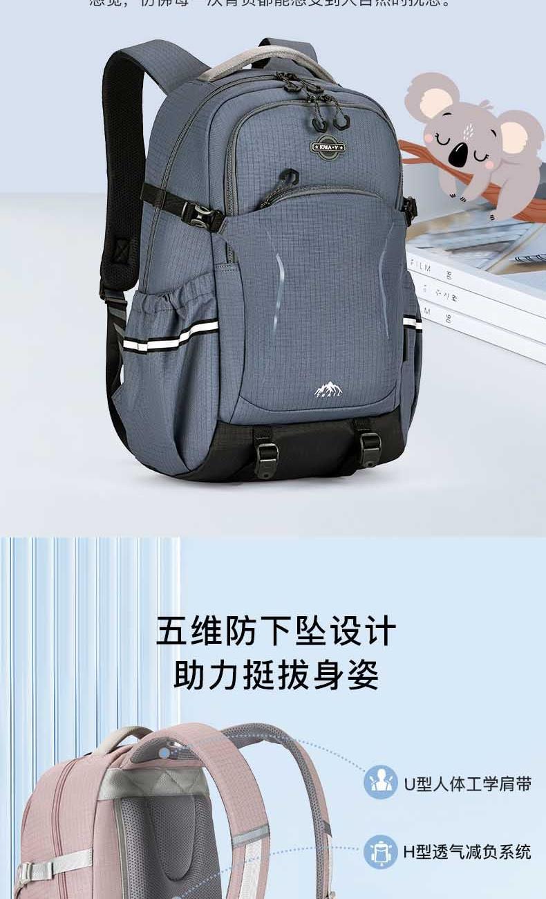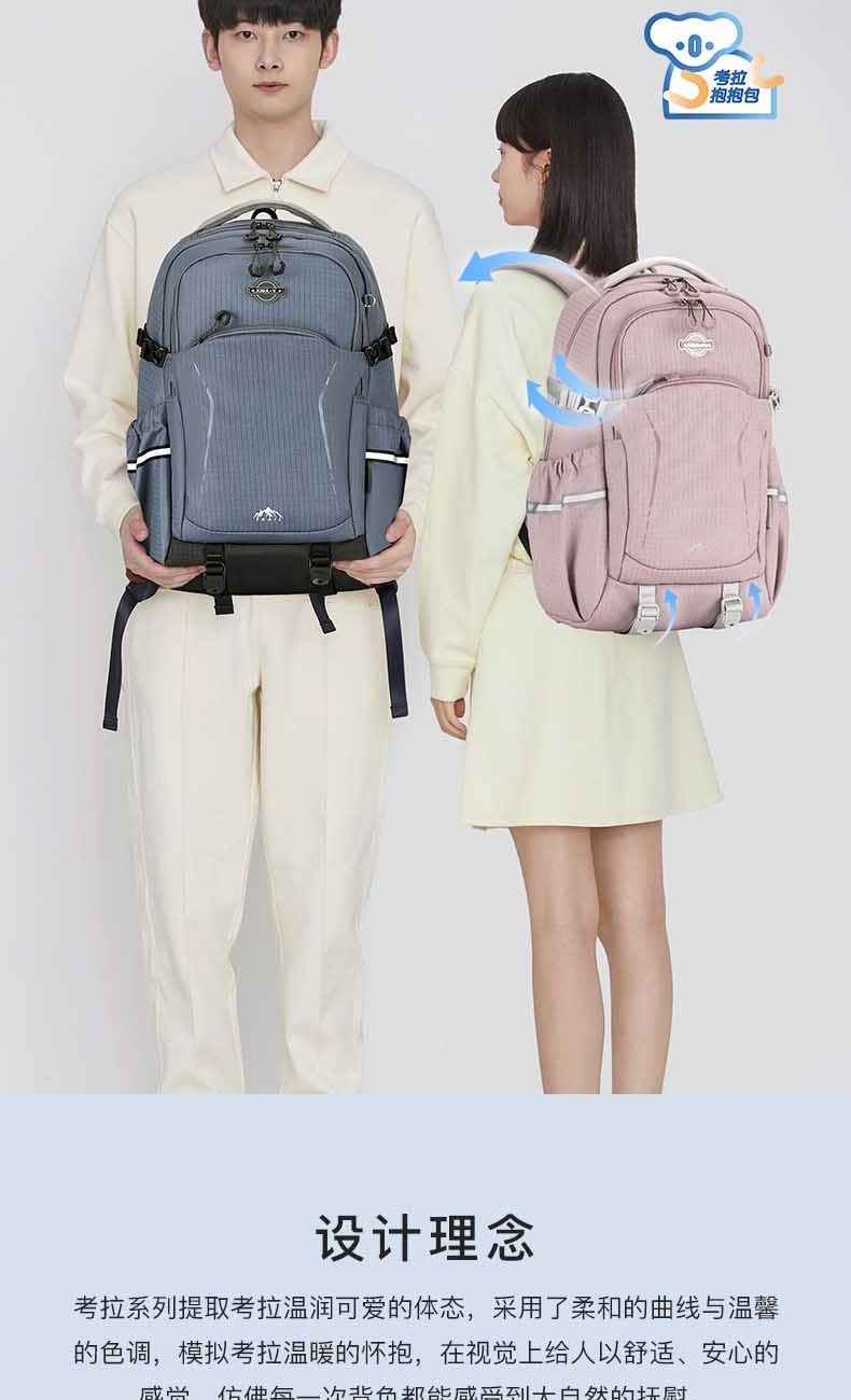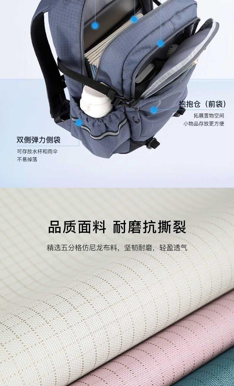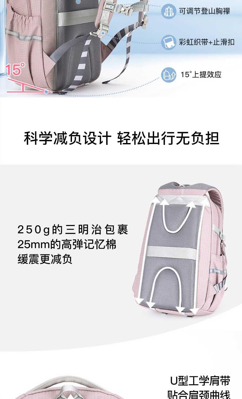 货号:CX5528 主体面料:织物;里料:织物 颜色:云雾粉 定位:165CM以上/ 休闲双肩包 净重:0.74kg 26L