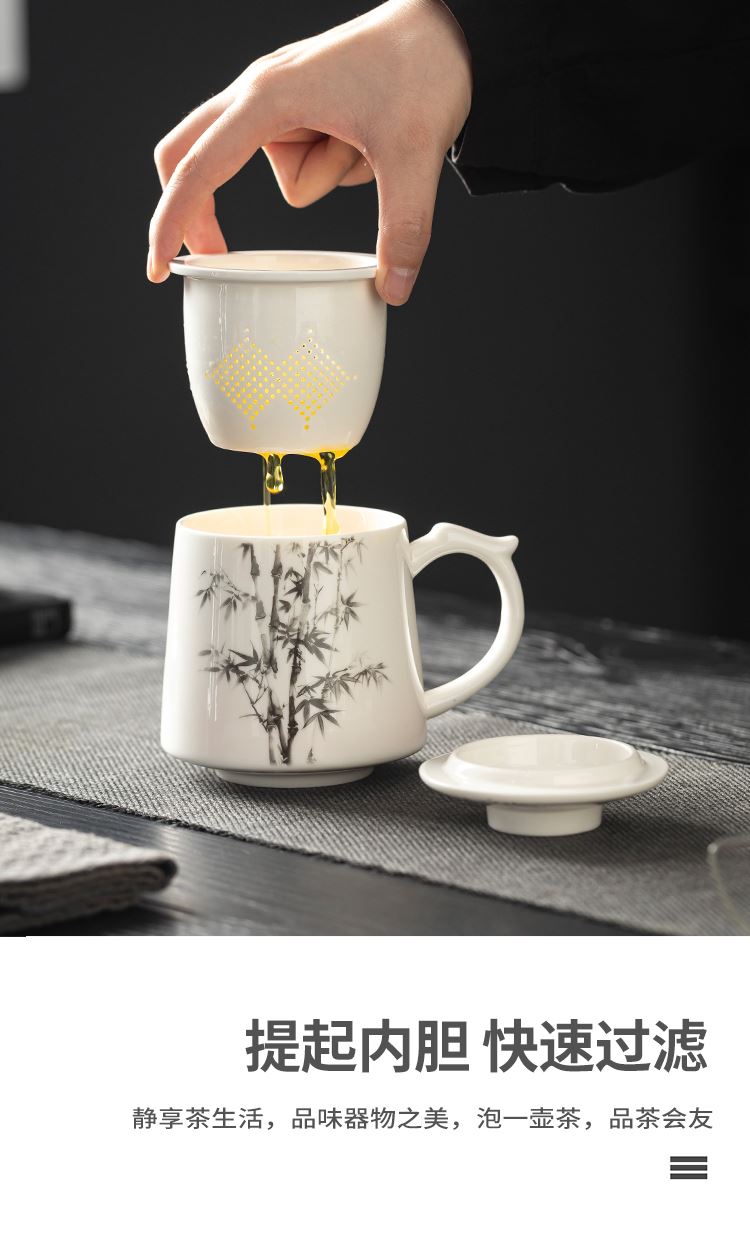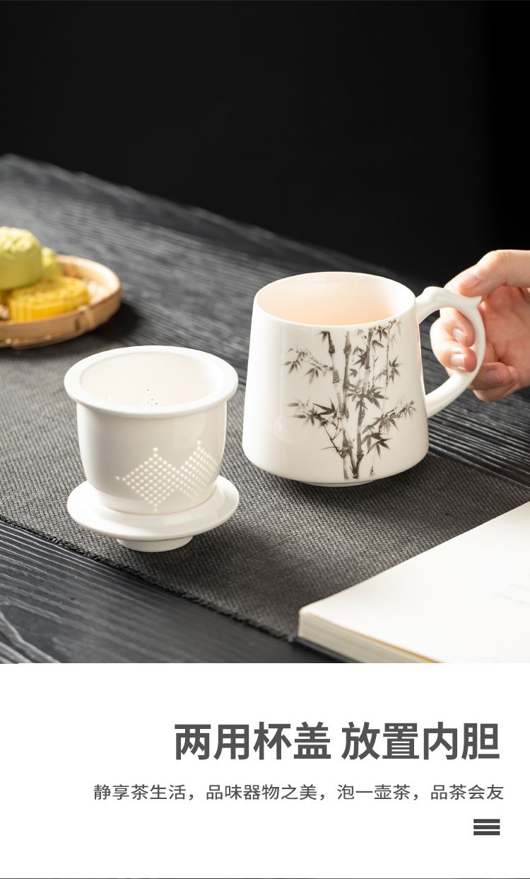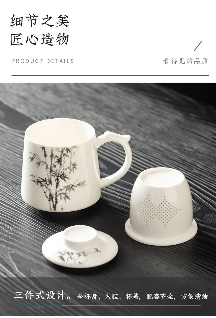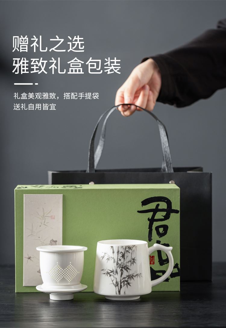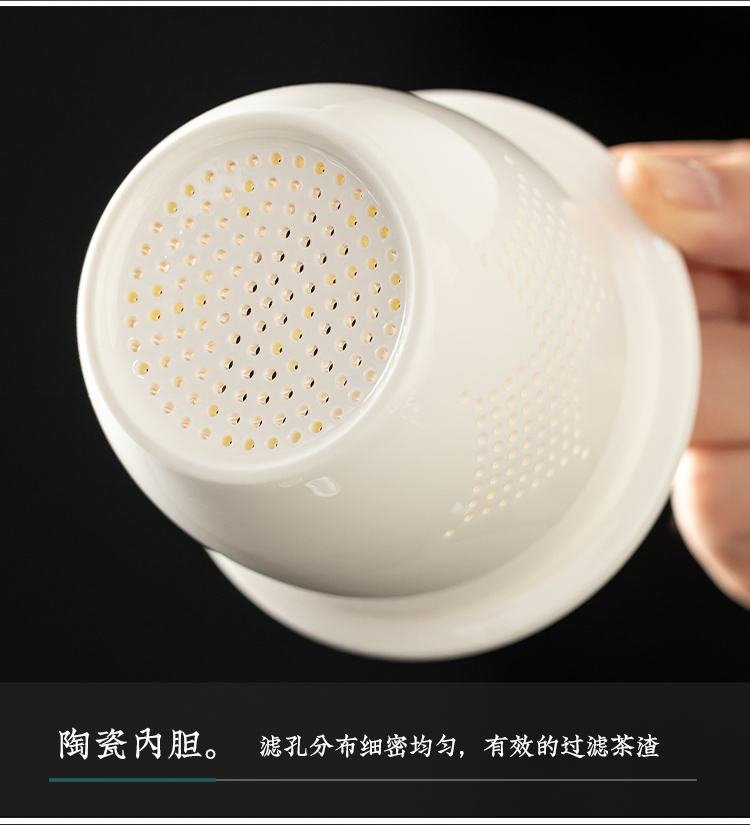 云博陶瓷节节高升办公杯过滤水杯马克杯茶水分离杯羊脂玉瓷伴手礼