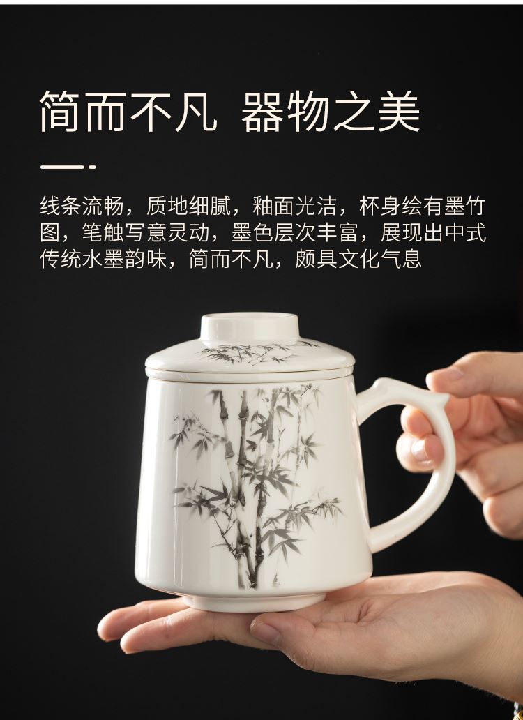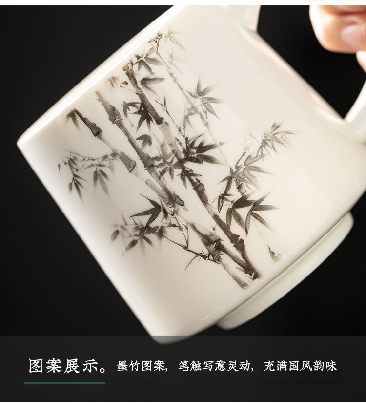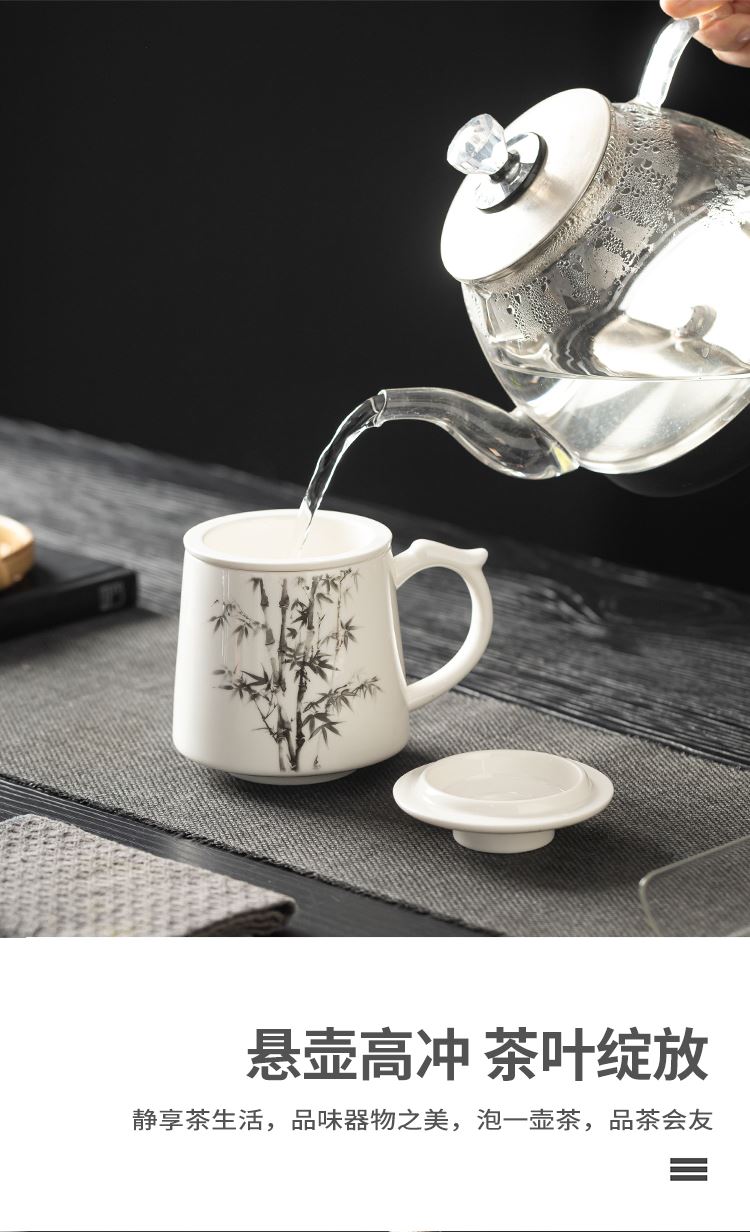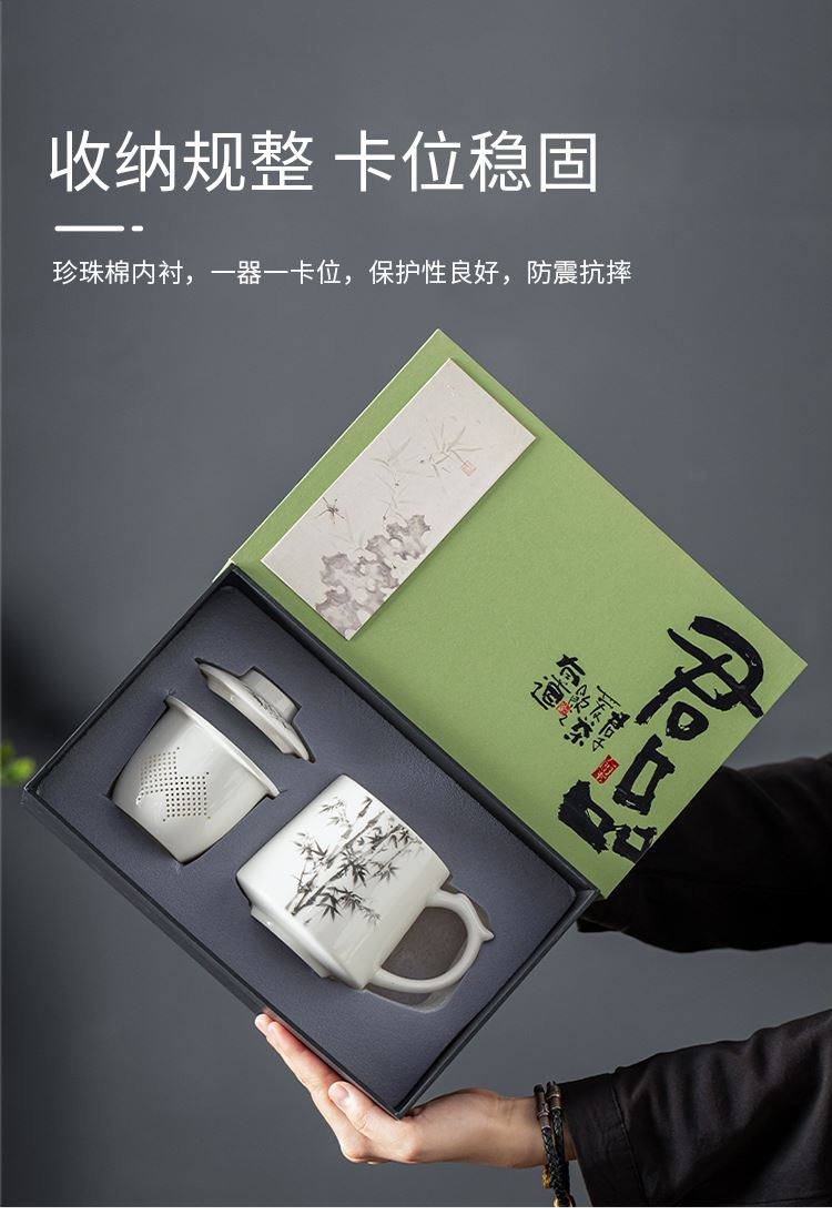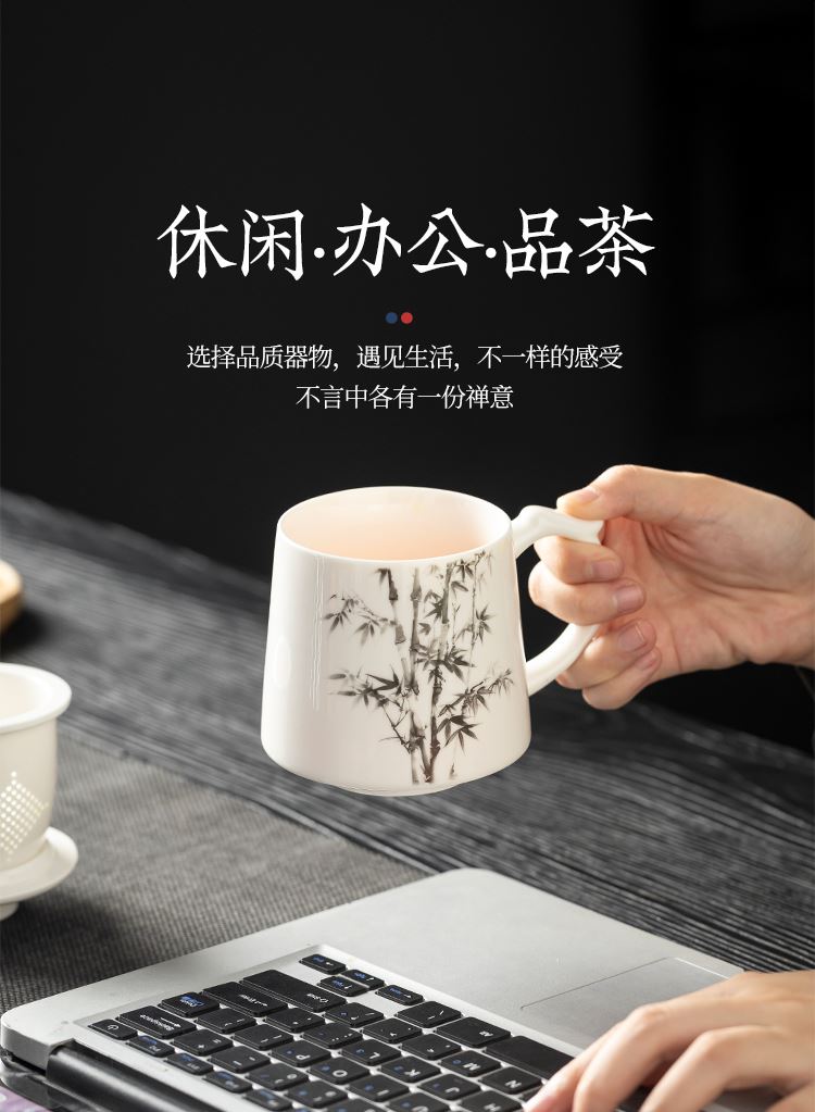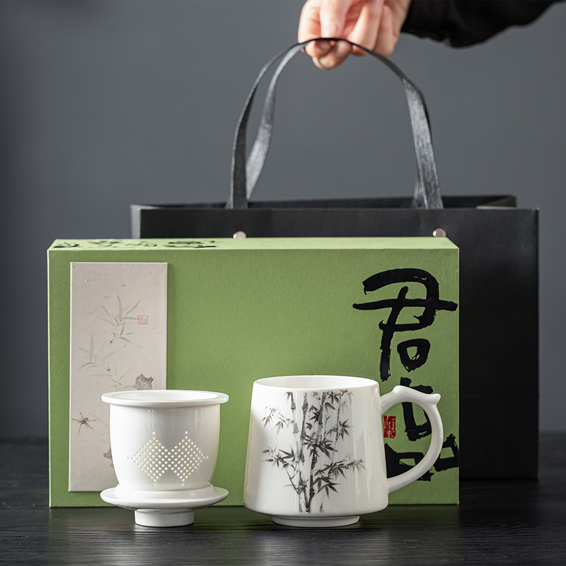 云博陶瓷节节高升办公杯过滤水杯马克杯茶水分离杯羊脂玉瓷伴手礼