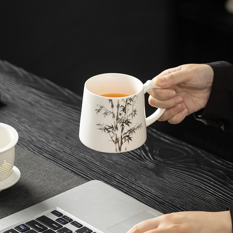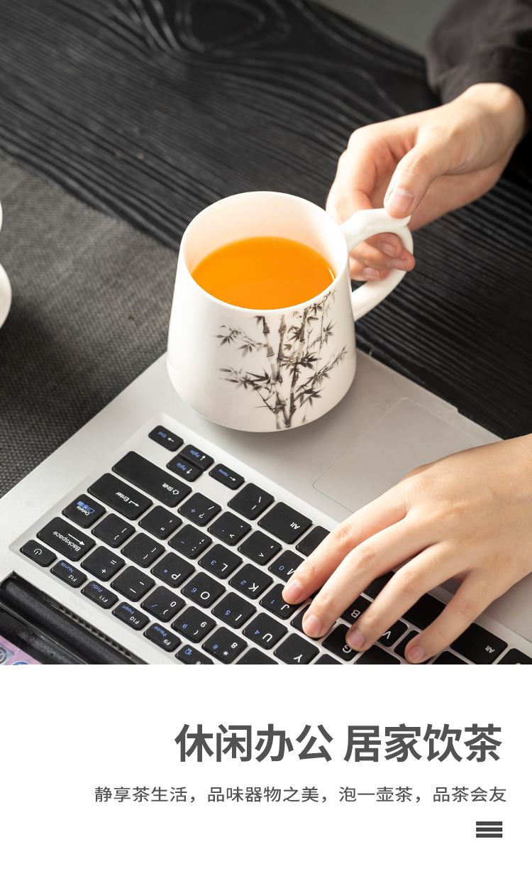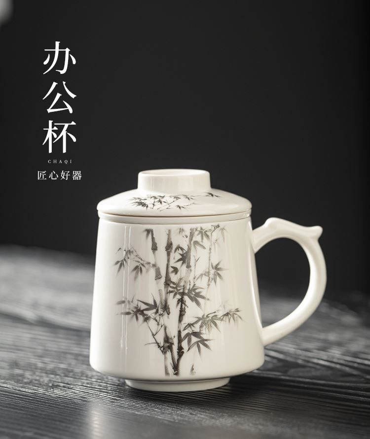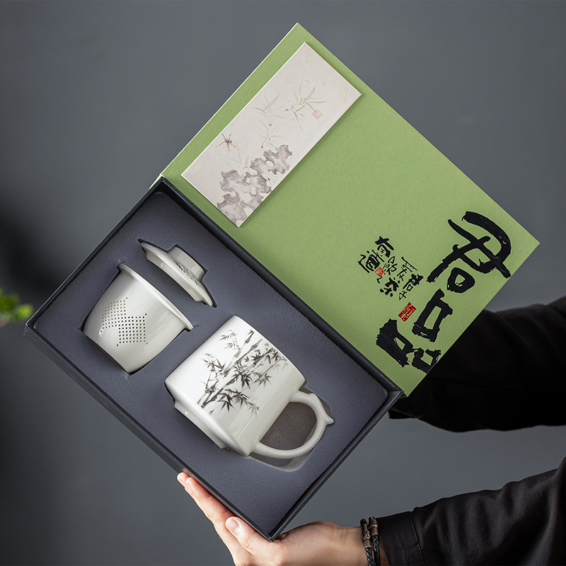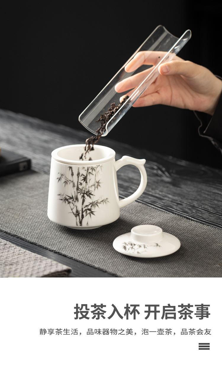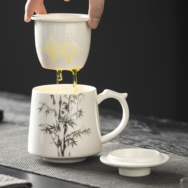 云博陶瓷节节高升办公杯过滤水杯马克杯茶水分离杯羊脂玉瓷伴手礼