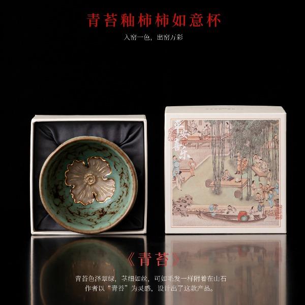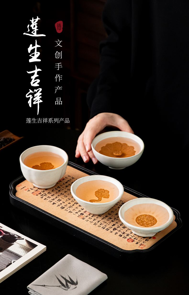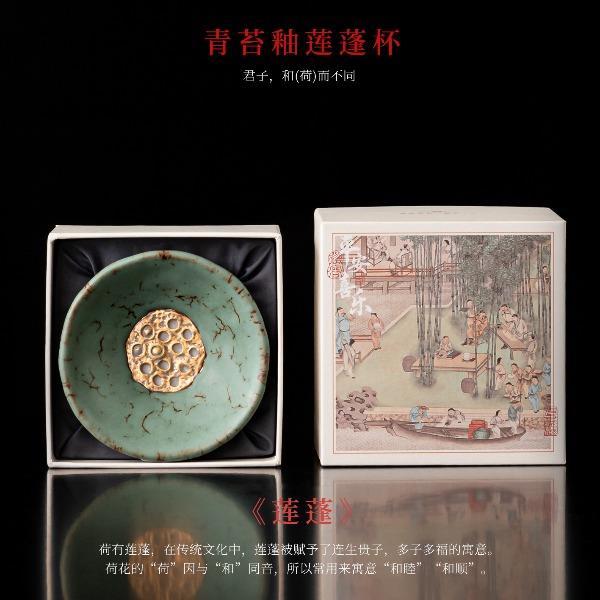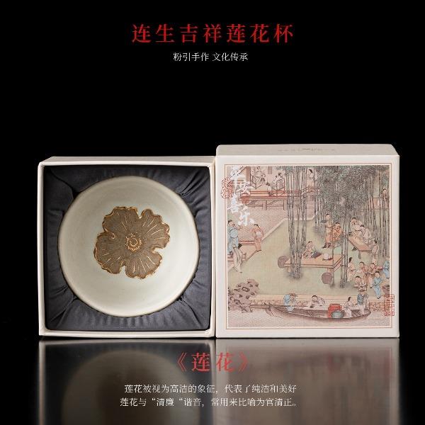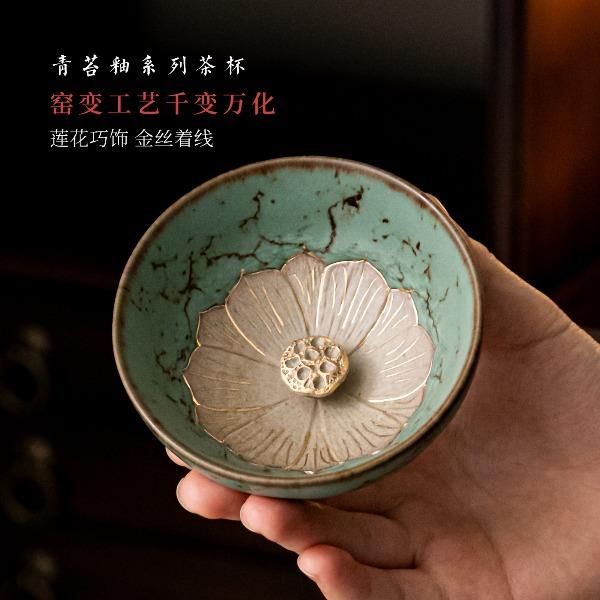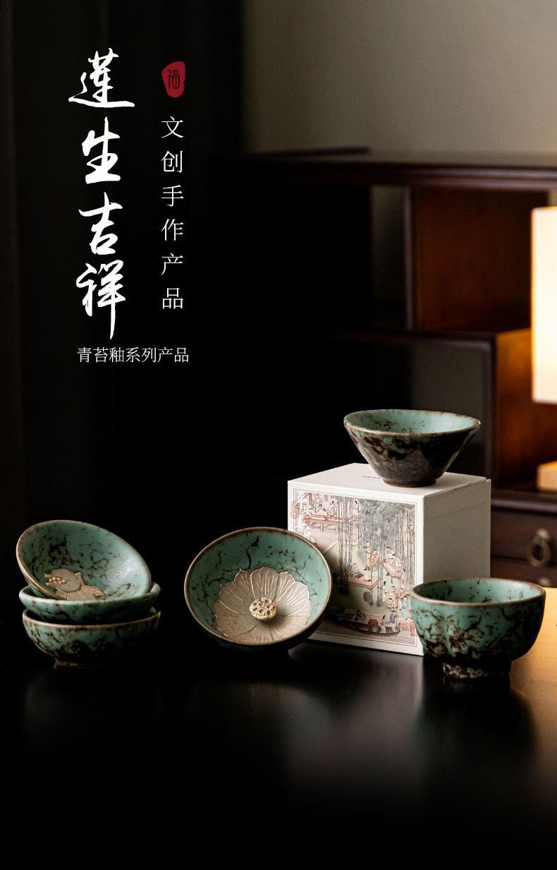 尾桥下窑复古文创青苔釉/粉引莲生吉祥主人杯茶事伴手礼开业促销