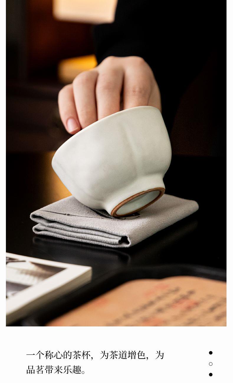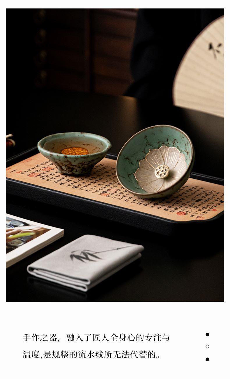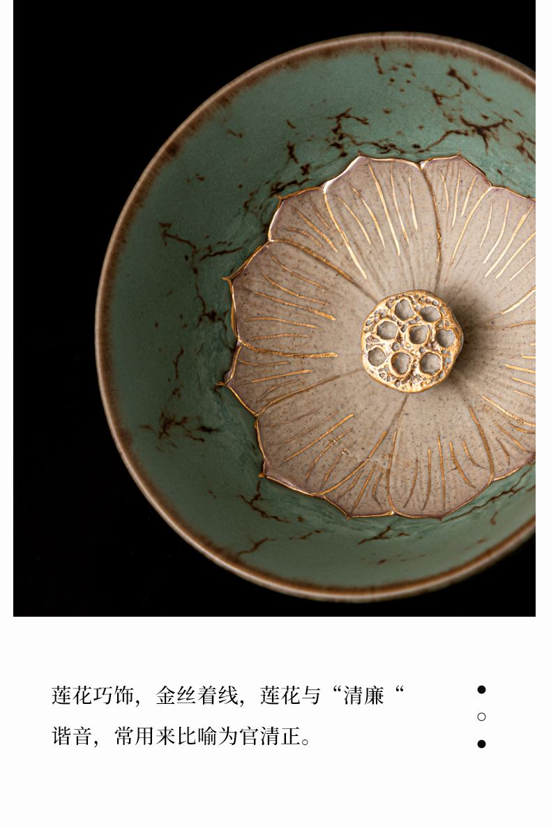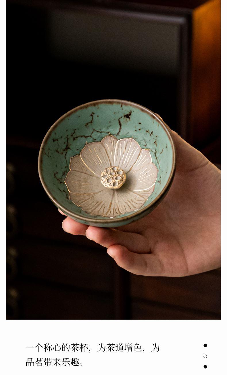 尾桥下窑复古文创青苔釉/粉引莲生吉祥主人杯茶事伴手礼开业促销