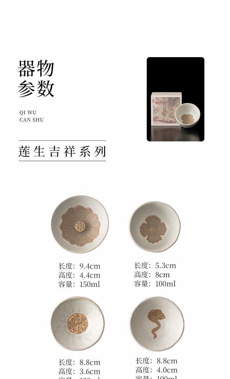莲花杯长度:9.4cm高度:4.4cm容量:150ml,