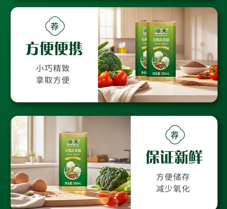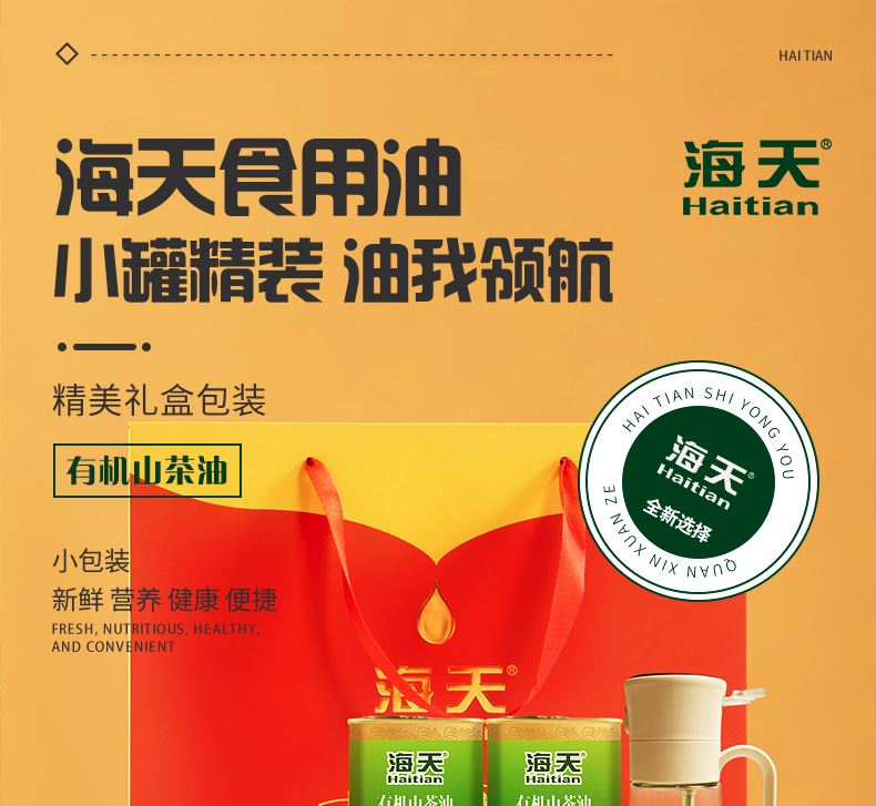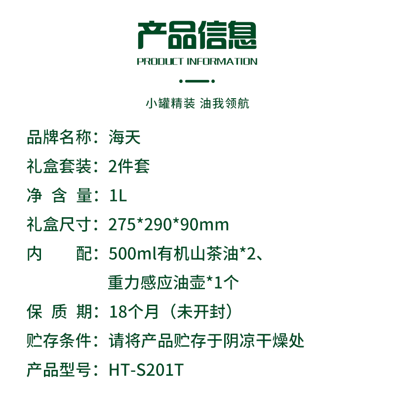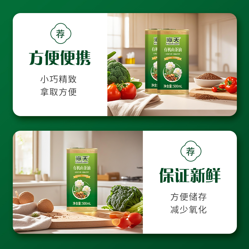 海天食用油有机山茶油1L铁罐二件套HT-S201T