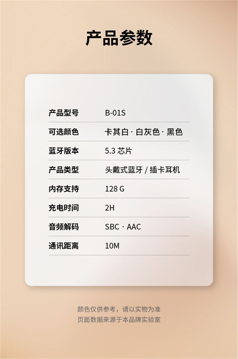 颜色:黑色、卡其白、白灰色 蓝牙方案:JL7006 蓝牙版本:V5.3 蓝牙距离:10m 频响范围:20HZ-20KHZ 电池容量:300mAh 使用时间(70%音量):≈30h 喇叭尺寸:40mm 喇叭灵敏度:98±3DB 充电接口:TYPE-C 1、可拉伸折叠 2、音乐游戏低延迟 3、支持插TF卡 4、支持AUX有线连接
