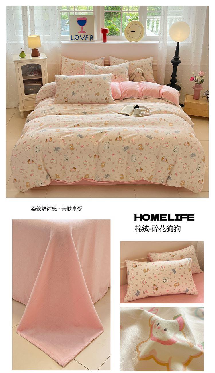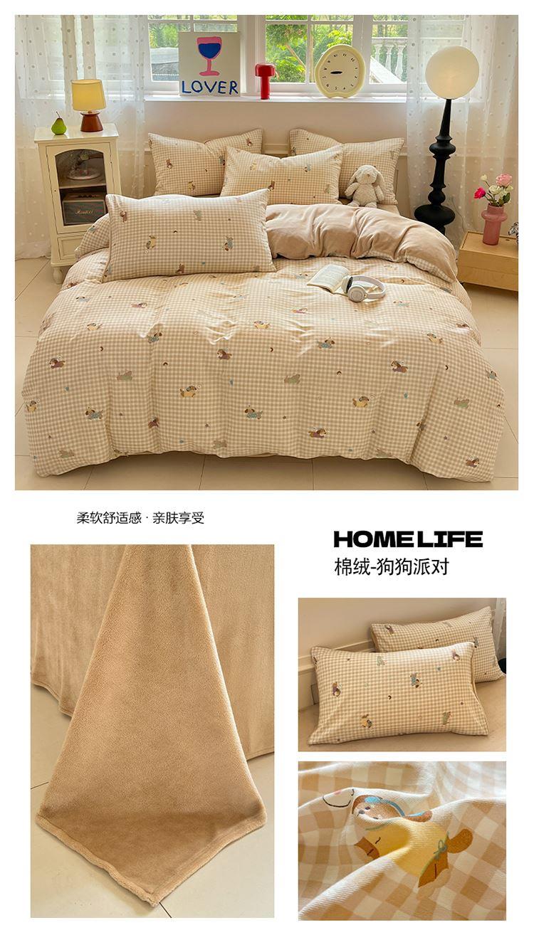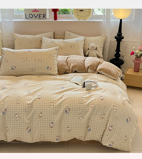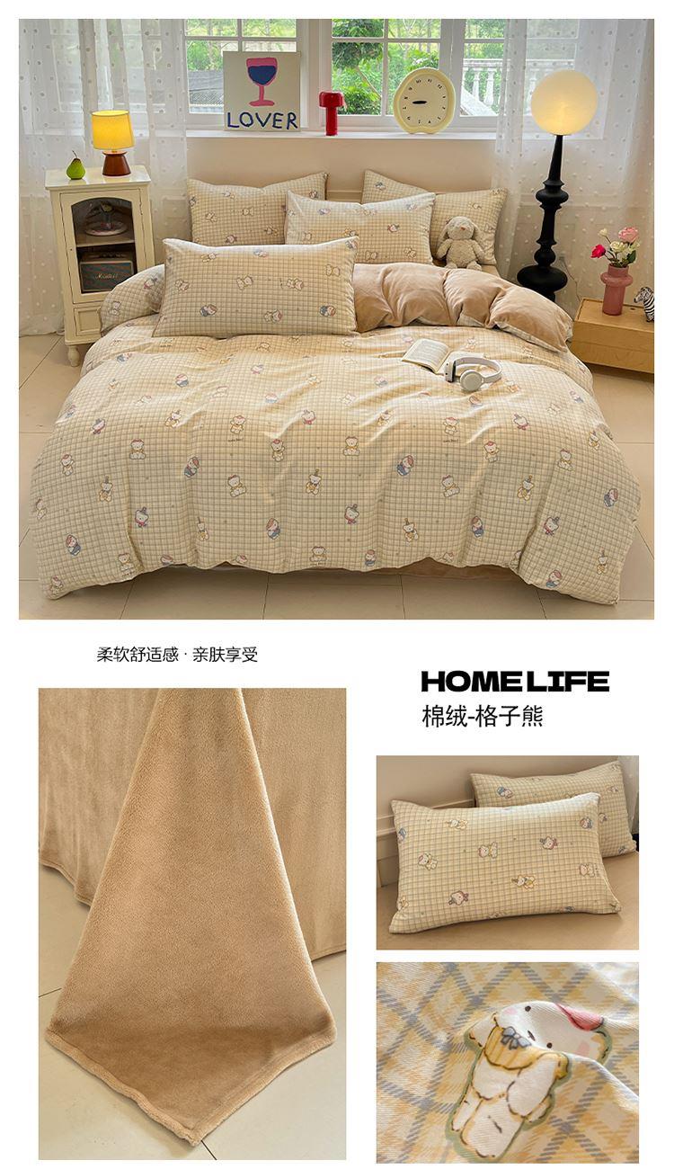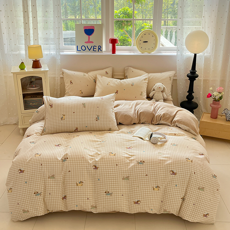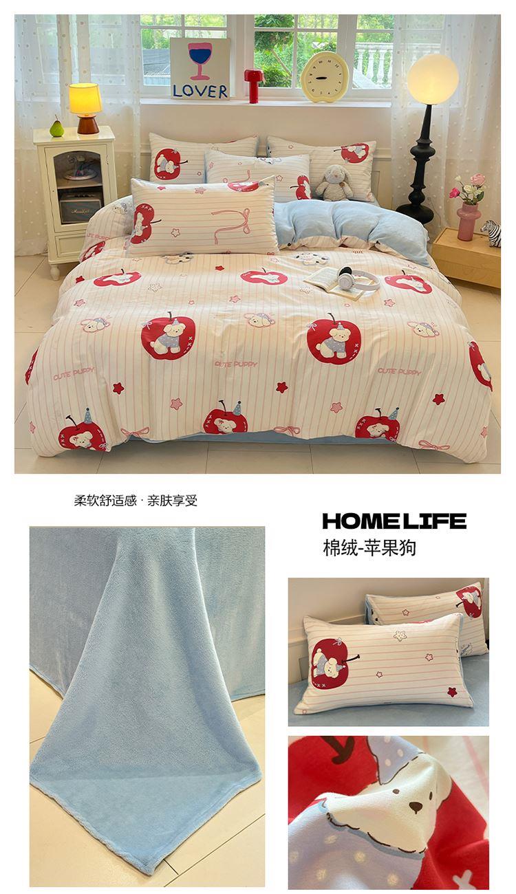 花花公子-家纺-全棉+牛奶绒印花保暖秋冬四件套