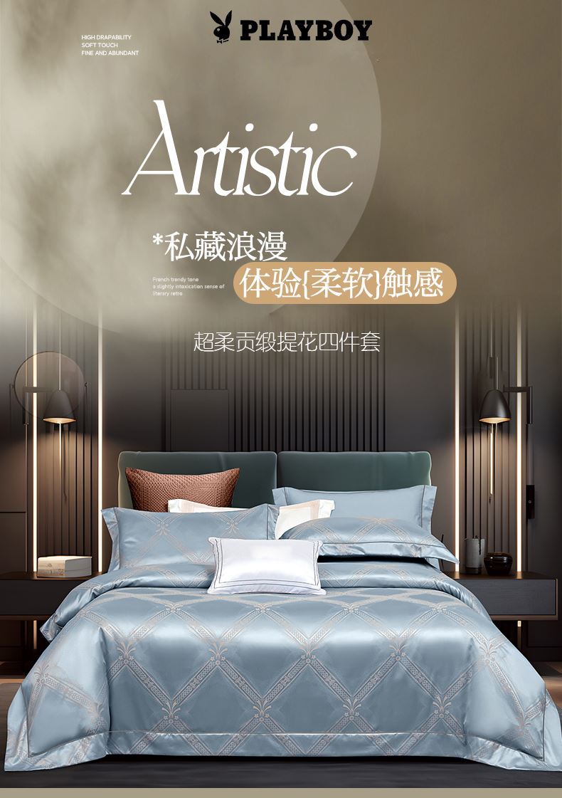 花花公子超柔贡缎提花四件套PB-25YZ125