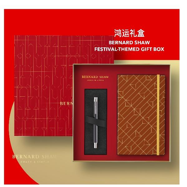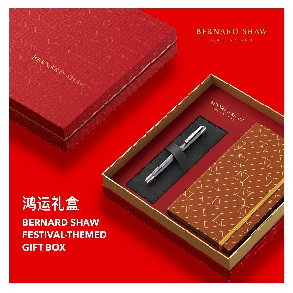 BernardShaw萧伯纳精灵蓝墨水笔鸿运笔记本礼盒 礼品已成功加入PPT!