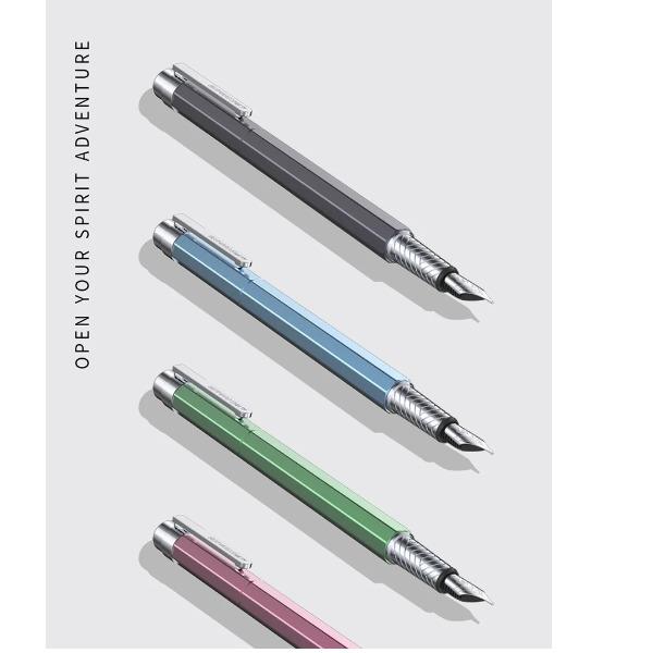 型号:精灵系列墨水笔 类型:螺纹上墨式墨水笔 重量:墨水/宝珠笔25g/30g 颜色分类:暮云隐灰冰川微蓝青空橄榄春日樱花海角雾蓝薰衣草紫 书写粗细:德国精研F尖 整笔材质:铝铜笔身:经典八角设计笔盖:卡扣嵌套设计笔握:24mm中距笔握 套餐类型:官方标配包装方式:单支礼盒装 适用场景:送礼书写 钢笔笔尖成分:不锈钢/地区: 笔尖种类:标准型适用人群:文艺青年 上墨方式:旋转吸墨笔杆材质:金属 笔尖嵌入方式:明尖笔身纹理:磨砂 墨水材质:非碳素墨水