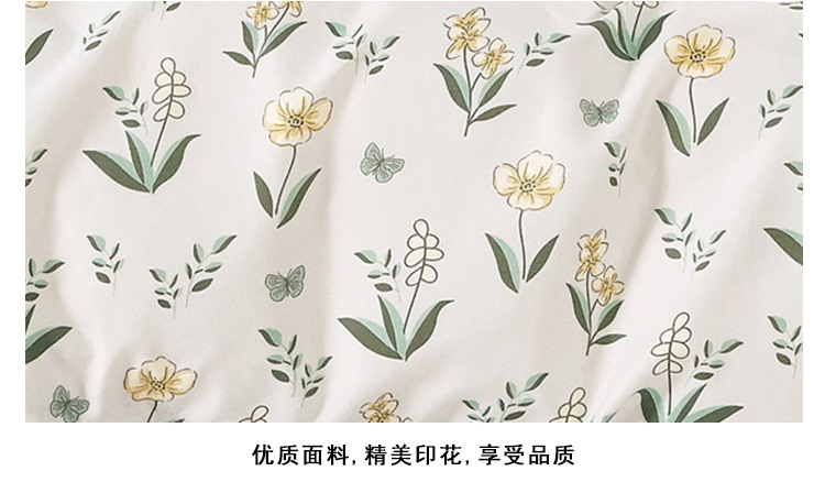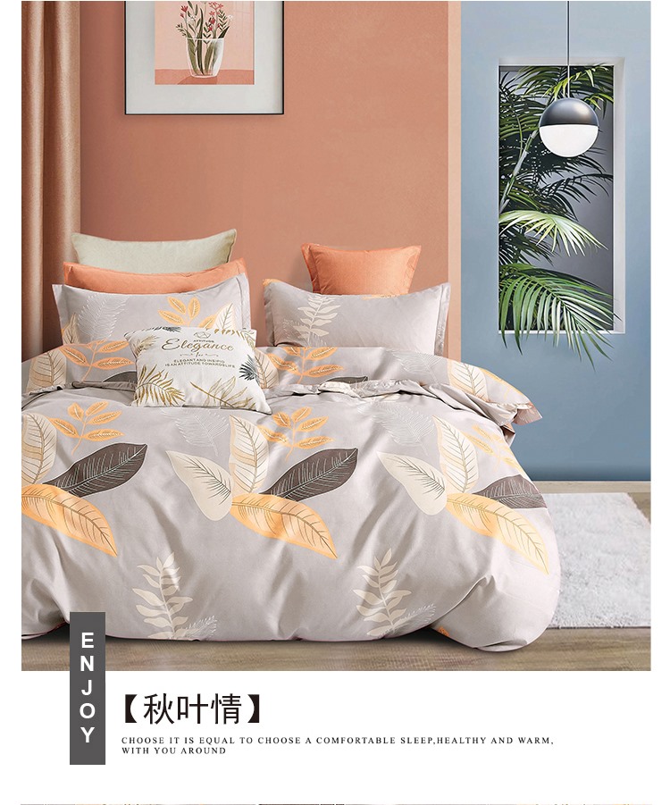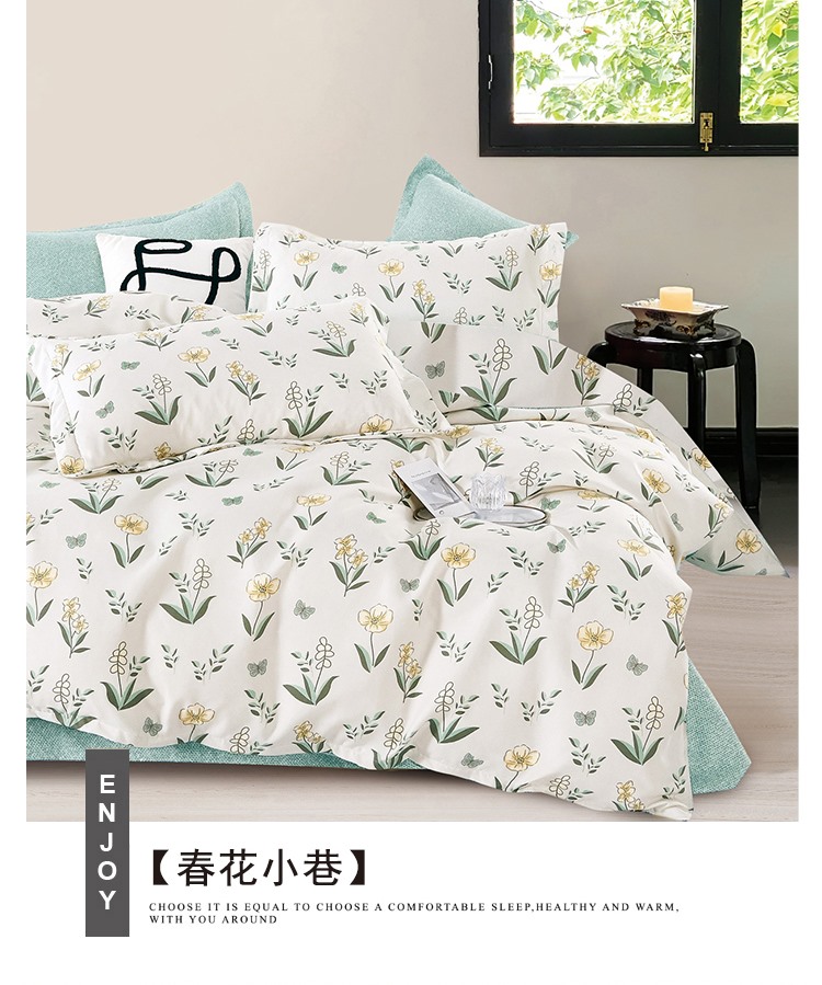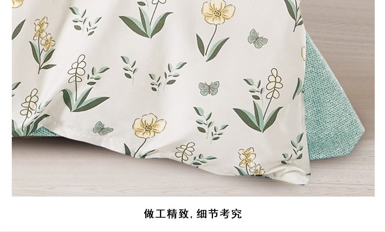 床单:230x230cm 被套:200x230cm 枕套:50x80cm 【面 料】长棉绒(聚酯纤维) 产品特点: 1.精选生态长棉绒面料,亲肤透气,细腻柔软; 2.活性印染,不添加劣质涂料,面料柔软,花型立体感强; 3.做工精细,足尺足码。