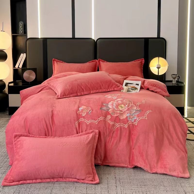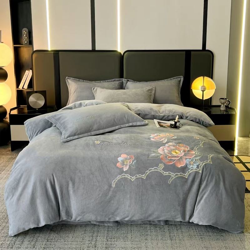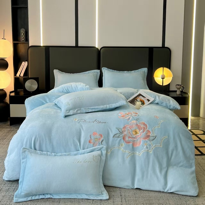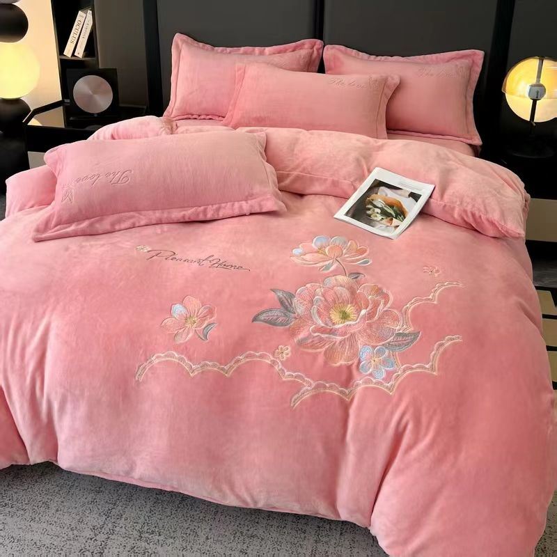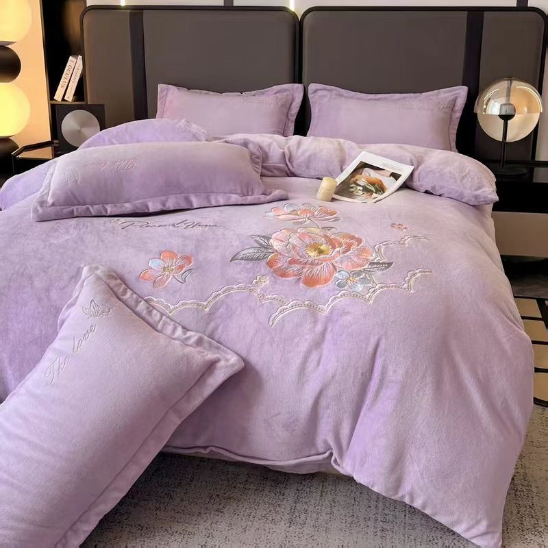 花花公子-家纺-牛奶绒刺绣保暖四件套-花间溪语