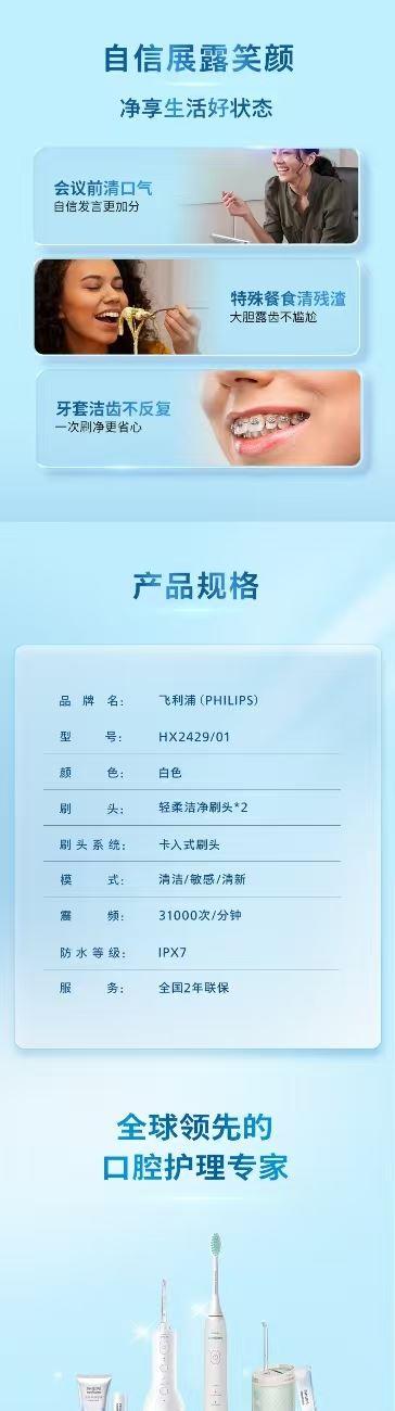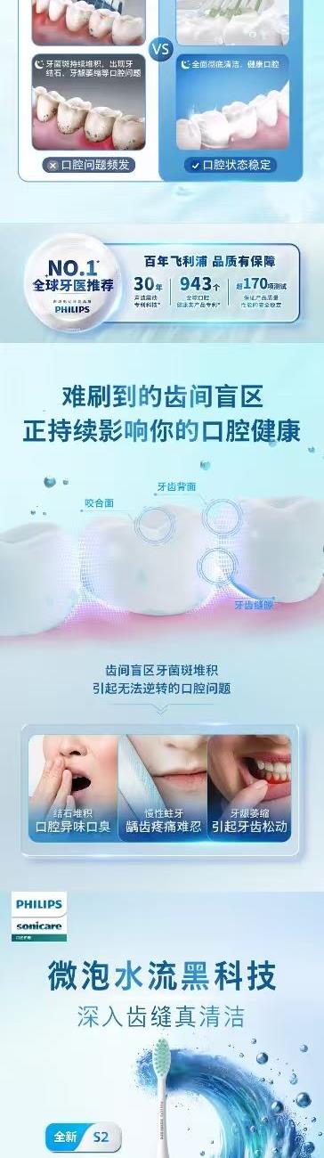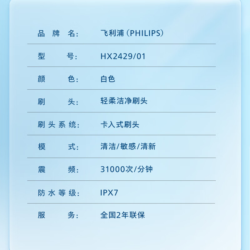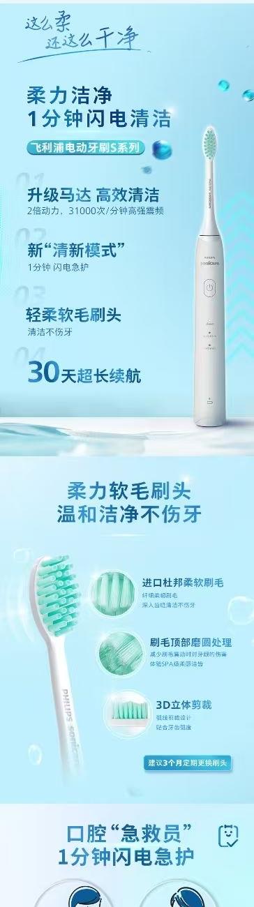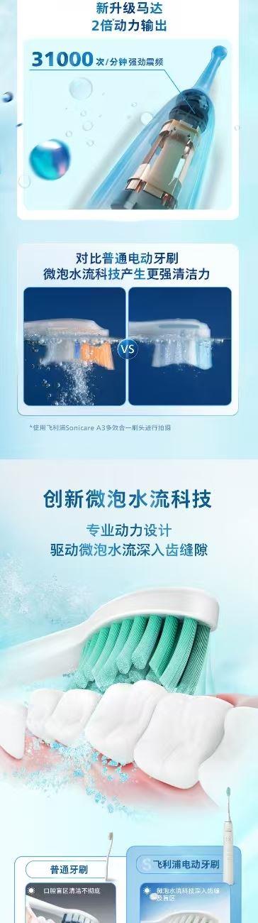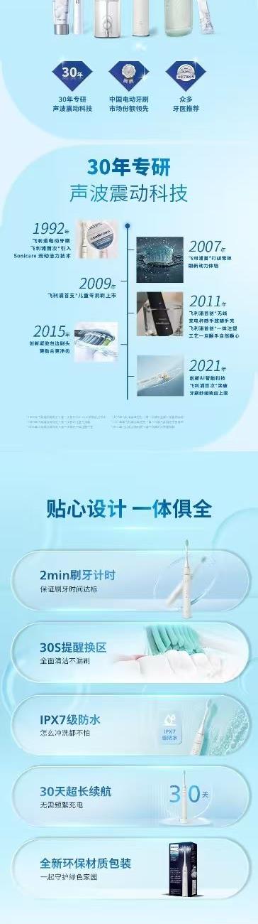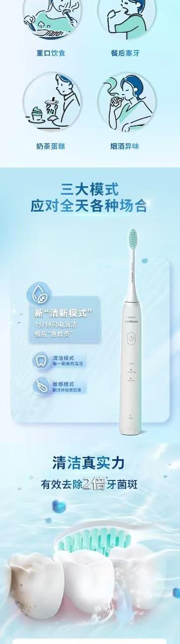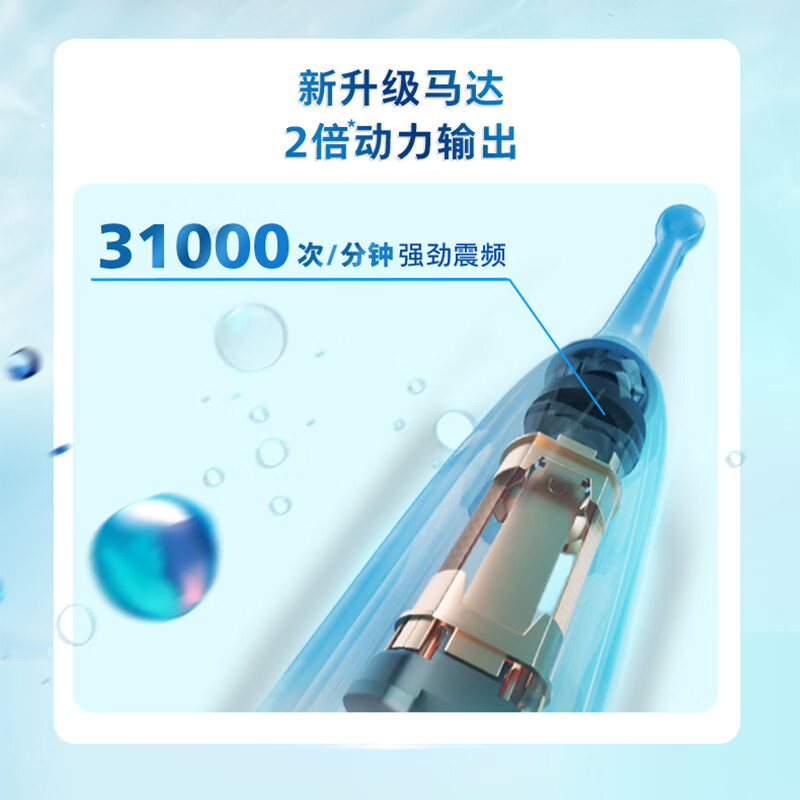 • 磁悬浮脉冲马达 震动频率高达 31,000 次/分钟 • 3种模式 (清洁 、敏感、清新)更有助于清洁2倍牙菌斑 • 10小时充满电 续航时间30天 IPX7级防水、 USB充电底座 、自带2个刷头 • 清洁模式提供出色日常清洁,而敏感模式则用于轻柔清洁牙齿和牙龈。 • 弧形刷毛贴合您的牙齿形状,让您可以轻松、轻柔地清洁难以触及的区域