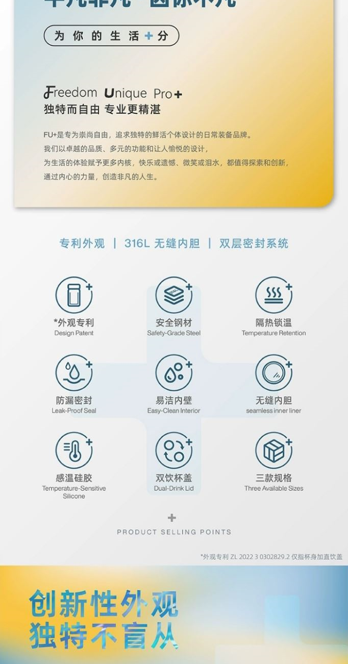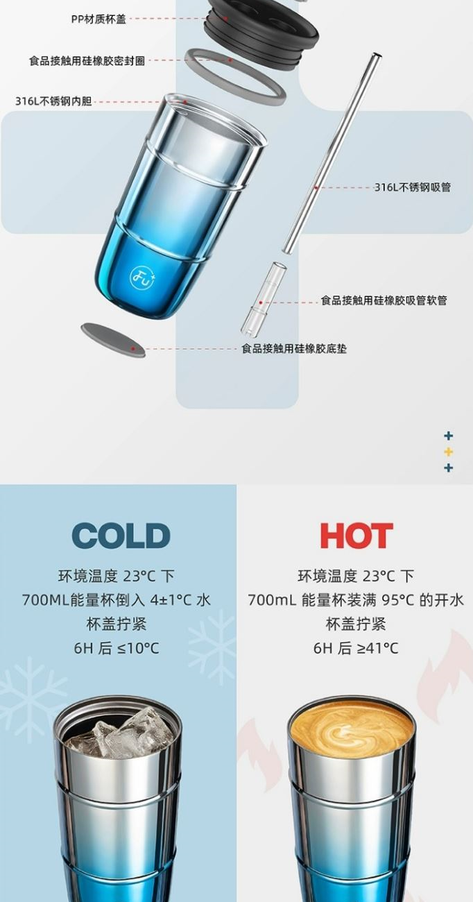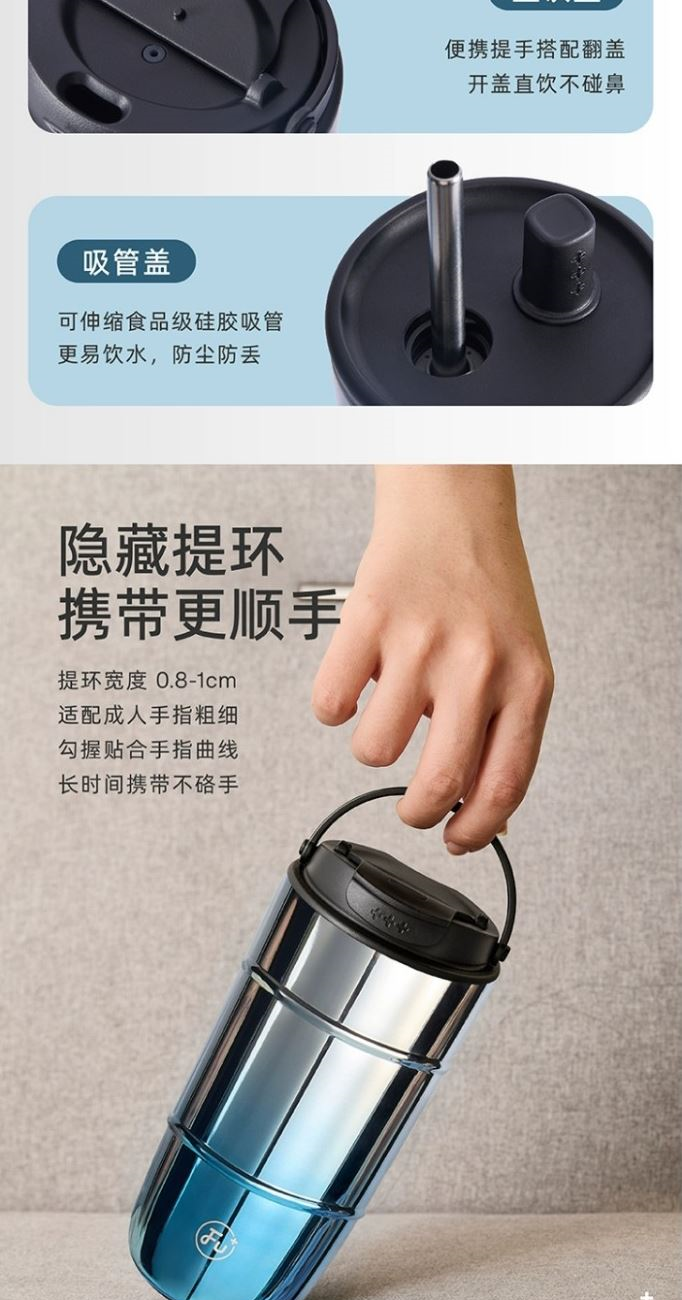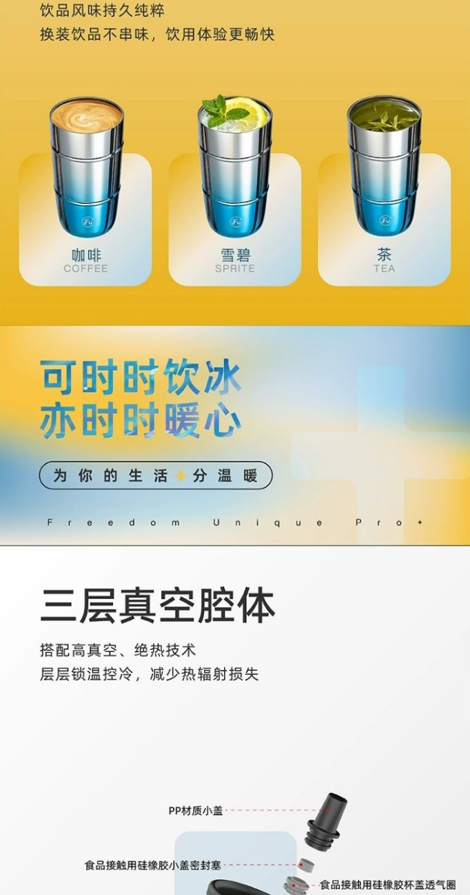 容量:370ml 颜色:电镀蓝 电镀金 电镀紫 尺寸:84*143mm 材质:严选316不锈钢内胆,采用镀铜真空工艺, 强效保温保鲜。 独特感温硅胶塞设计,饮用不怕烫嘴。 一杯双盖,饮水方式随心切换,防丢杯盖设计。 包装:单瓦盒