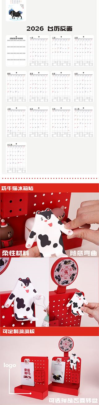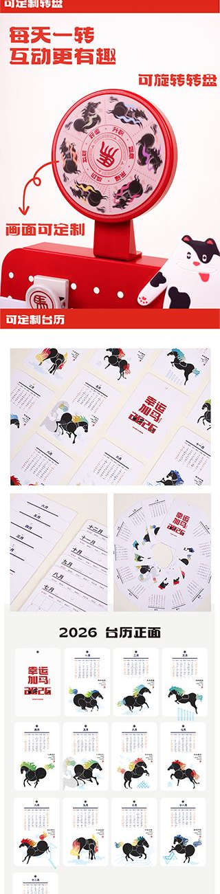 贪吃猫文创2026马年好运转盘台历洞洞板组合新年送礼佳品
