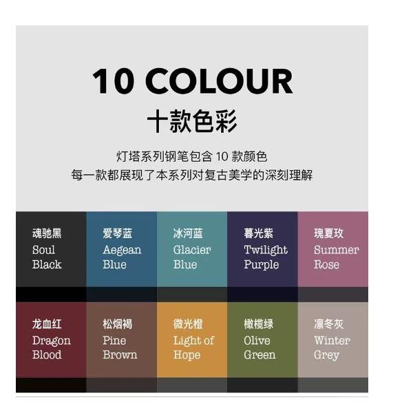 型号:灯塔系列墨水笔 类型:螺纹上墨式墨水笔 重量:墨水/宝珠笔43g/47g 颜色分类:微光橙凛冬灰橄榄绿爱琴蓝龙血红魂驰黑 书写粗细:F尖 套餐类型:官方标配 包装方式:鸿运笔记本礼盒装 适用场景:送礼书写钢笔笔尖成分:铱金笔 /地区:笔尖种类:标准型 适用人群:商务办公人士 上墨方式:旋转吸墨笔杆材质:金属笔尖嵌入方式:明尖 笔身纹理:格子纹墨水材质:非碳素墨水