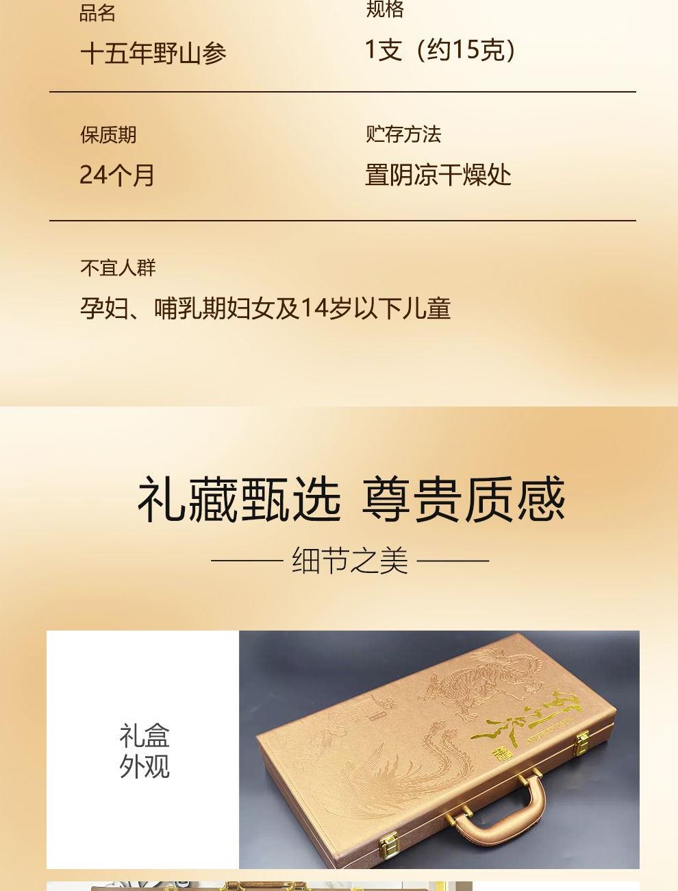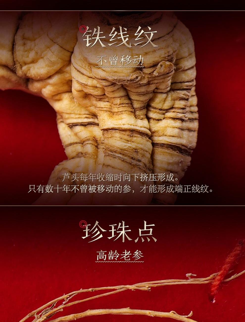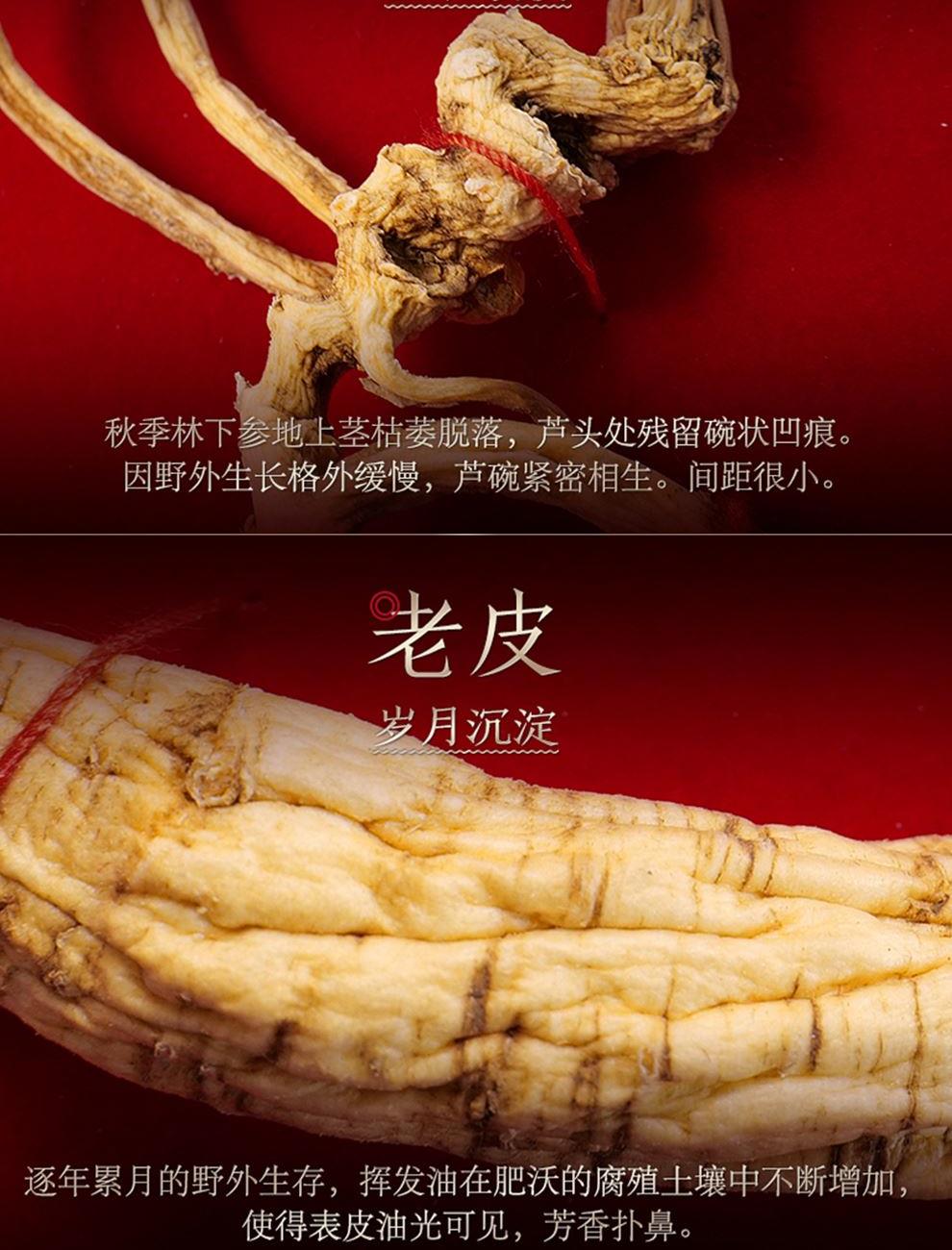 深山自然生长十五年,产量珍贵,极为珍贵。 富含人参皂苷,增强免疫功效显著。 资源稀缺,品质上乘者具保值增值潜力。