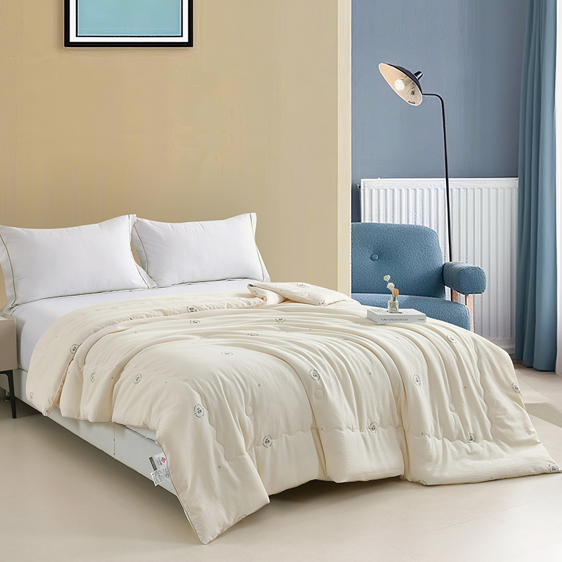 2.内里填充优质羽丝棉,千万朵超细纤维轻盈蓬松如蒲公英飞舞,形成立体保温层却丝毫不显厚重。暖阳棉的透气性与羽丝棉的储热特性结合,使被子既能保持恰到好处的温暖,又不会产生闷热感。