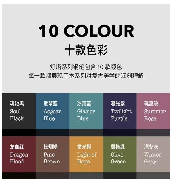 型号:灯塔系列 签字笔类型:可替换芯宝珠笔 重量:墨水/宝珠笔43g/47g 颜色分类:微光橙凛冬灰橄榄绿爱琴蓝龙血红魂驰黑 书写粗细:0.6mm笔芯颜色:黑色 套餐类型:官方标配 包装方式:单支礼盒装 适用场景:送礼书写/地区: 适用人群:商务办公人士 笔杆材质:金属笔身纹理:格子纹
